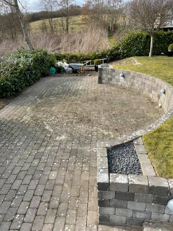 Fliserne der er under et udhæng blev faktisk ikke så pæne og der gik hul i 3 fliser pga højtryksspuler.