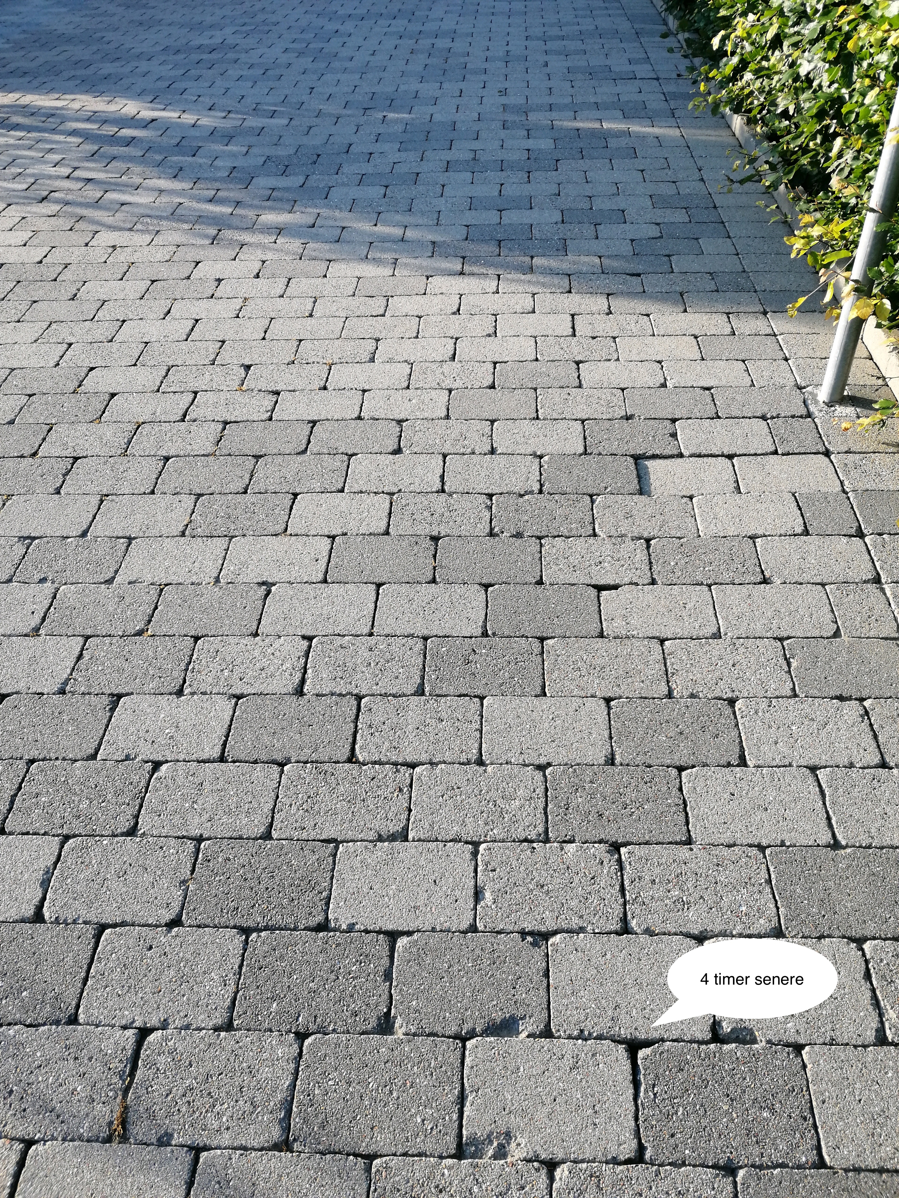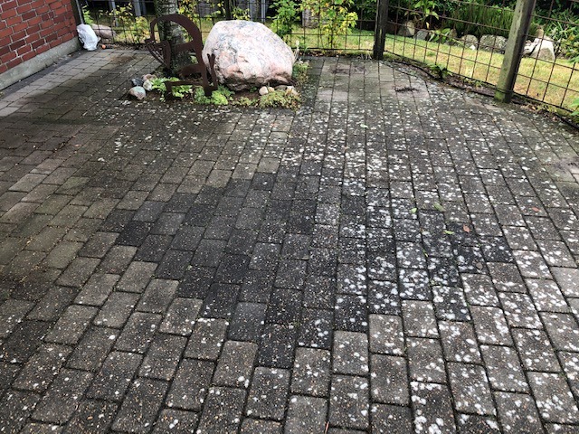 Området blev effektivt grundrenset for alger, mos og flisepest, efterfølgende skyllet helt rent og afslutningsvis skumbehandlet for nedbrydning af rester af alger og flisepest.