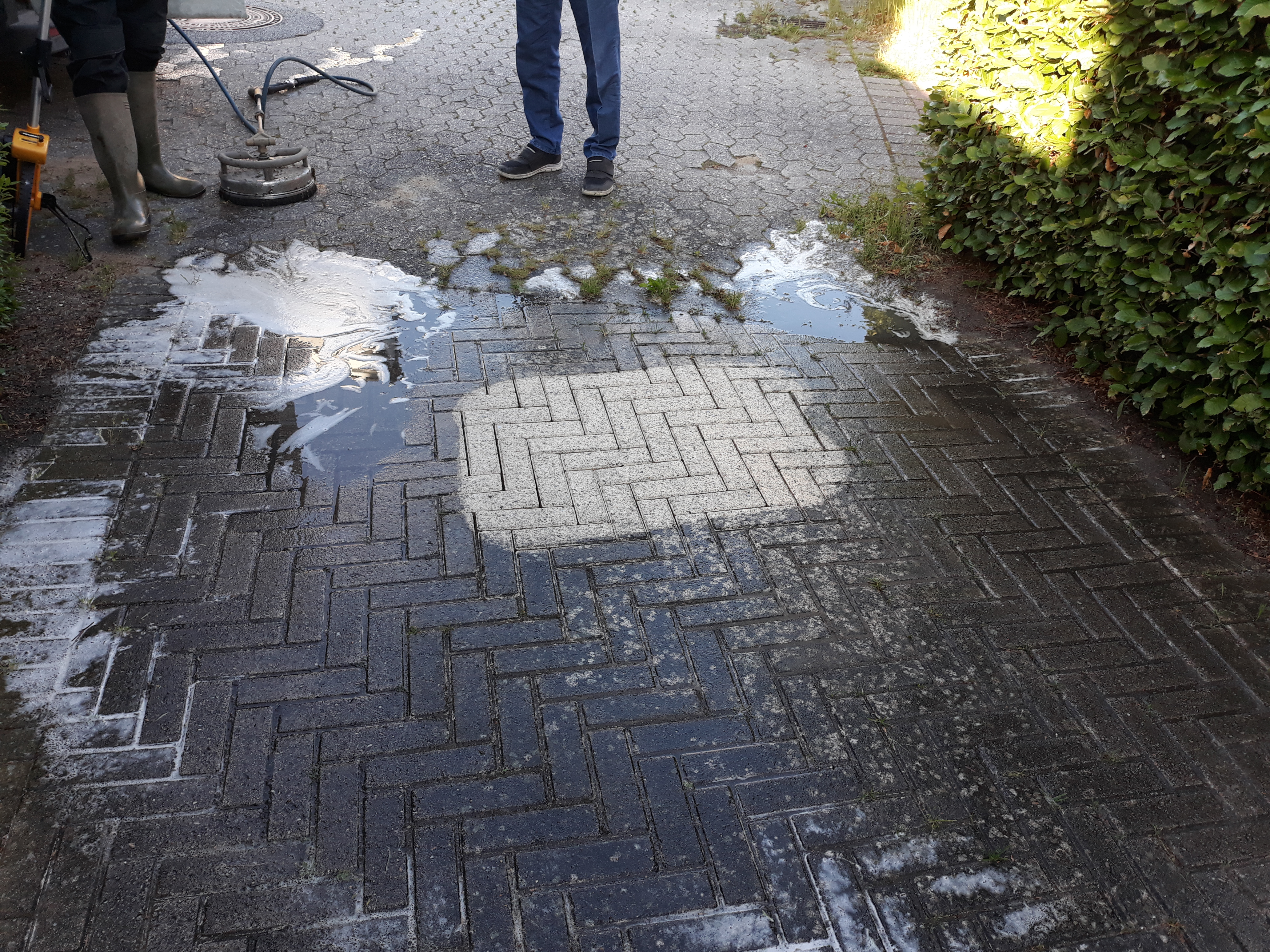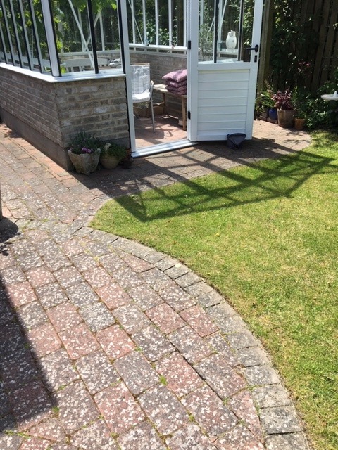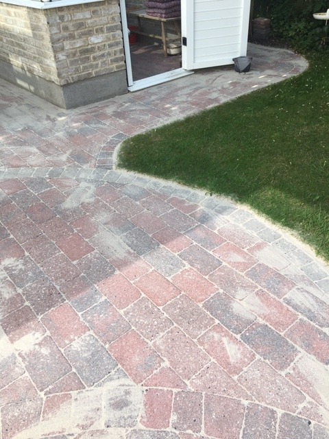 Arbejdet er fint, men Christian har glemt ca. 2 kvadratmeter, der ikke er helt færdig, mangler sand og fejning.