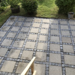 94 m2 terrasse, 3 lave trappesten samt en kant rundt omkring et bed blev renset for flisepest og mos og efterfølgende imprægneret, det er blevet super flot.