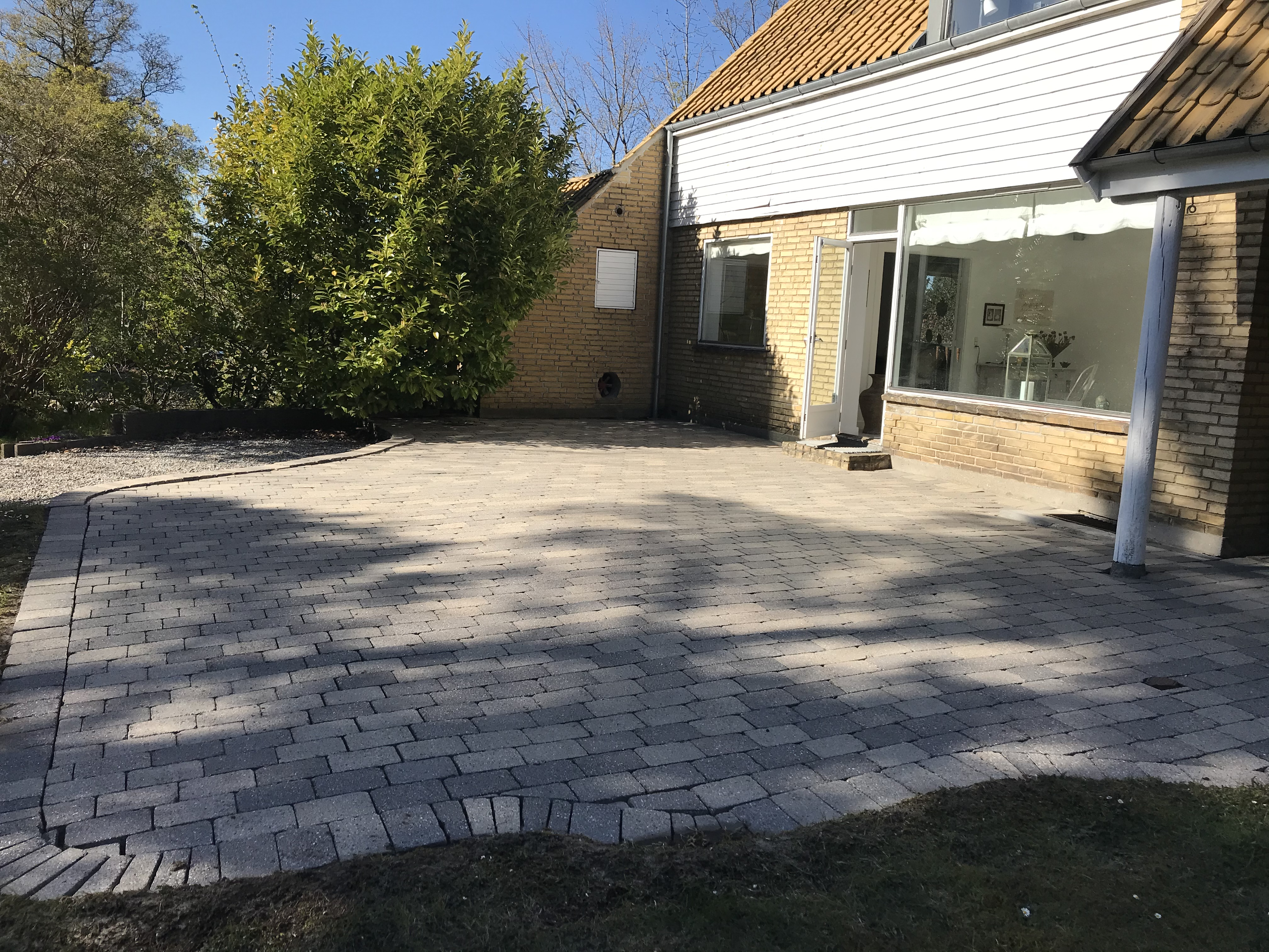 Den lille prøve på flise-rensning gjorde udslaget. Jeg bestilte straks hele pakken til min store indkørsel og flere terrasser på grunden.