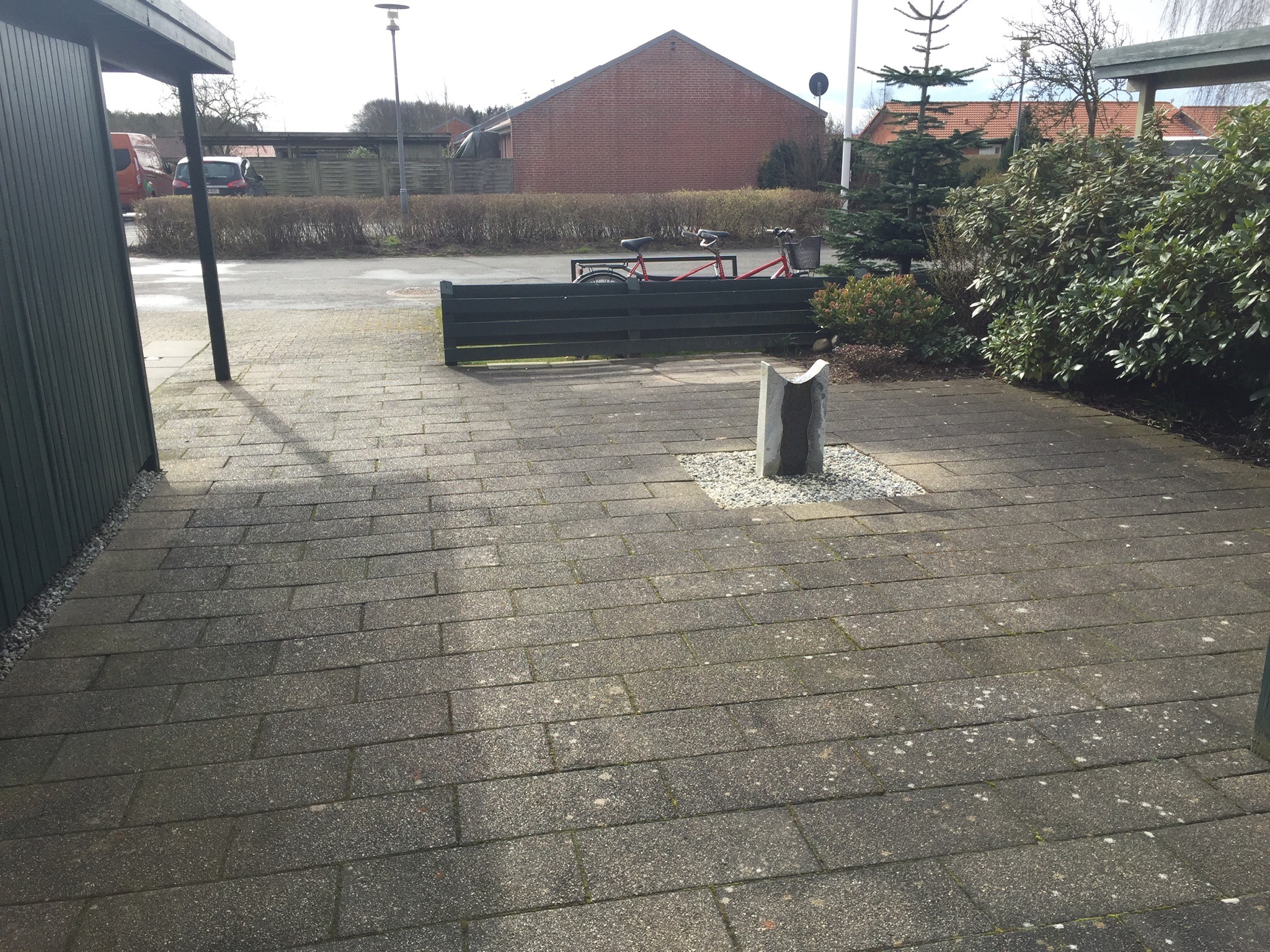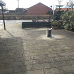 Vi har fået renset vores indkørsel for mos og alger. Der er derefter lagt en belægning som skulle gøre at der ikke kommer mos eller alger igen. Derefter er der strøet fugesand.