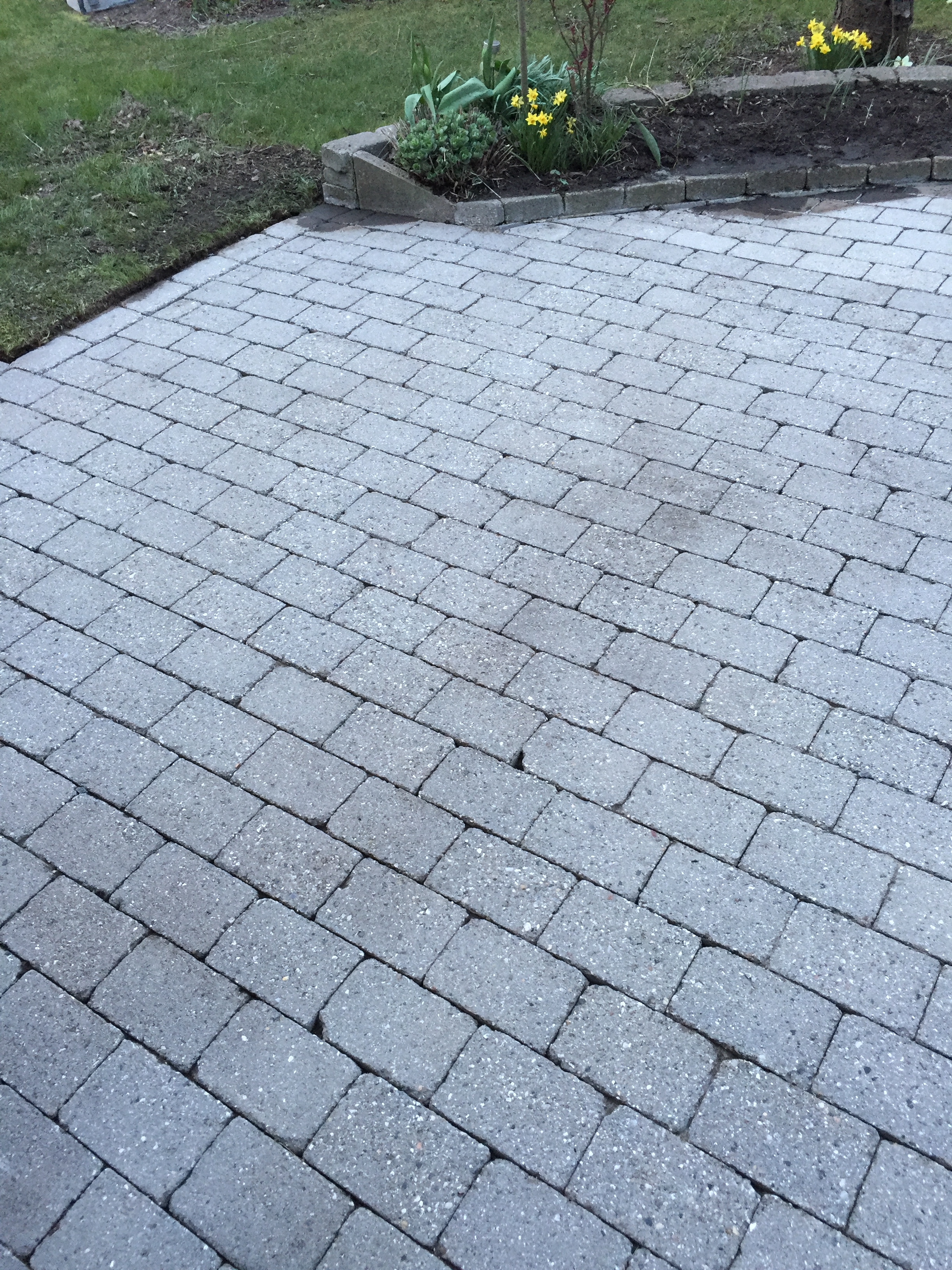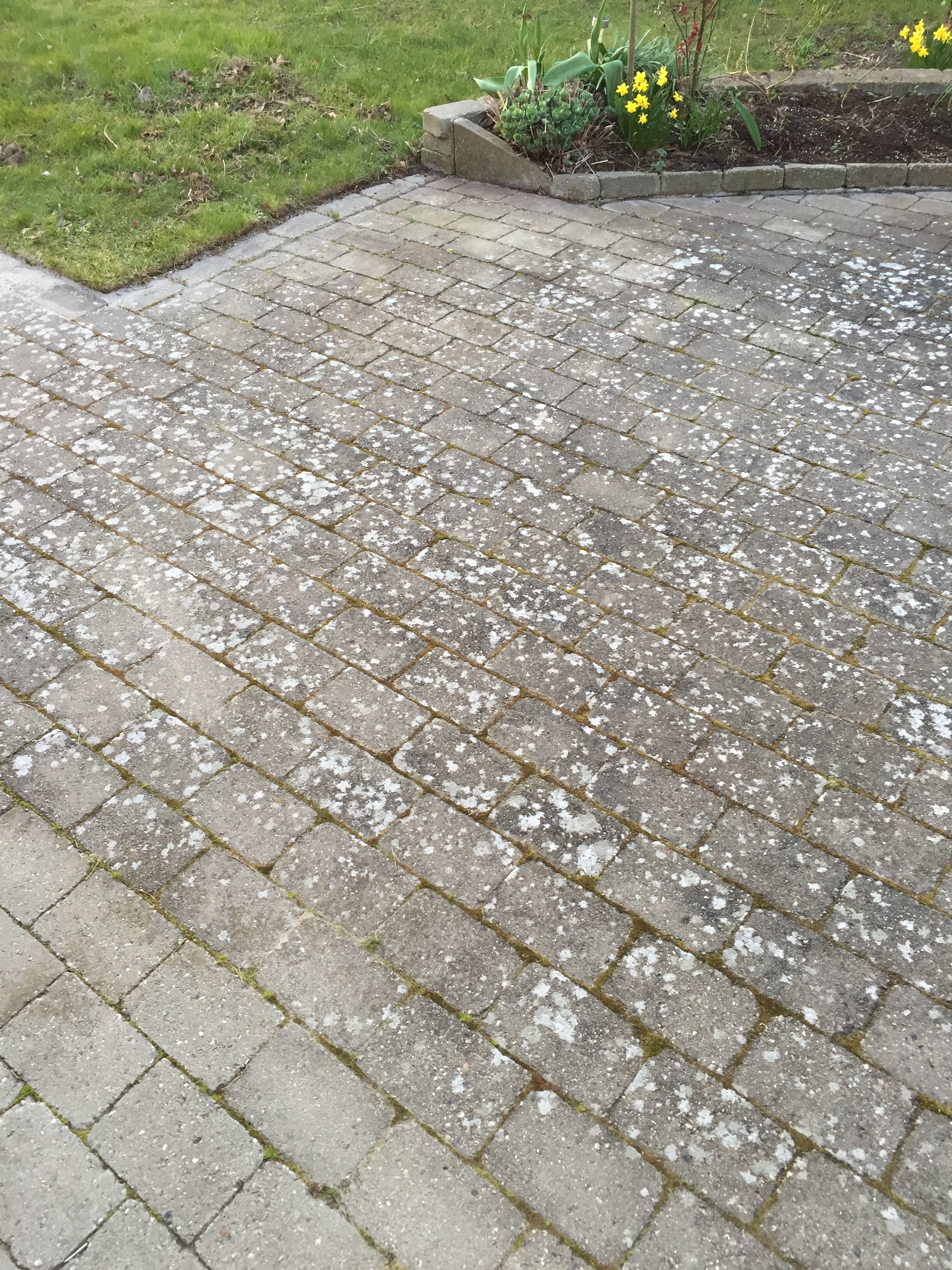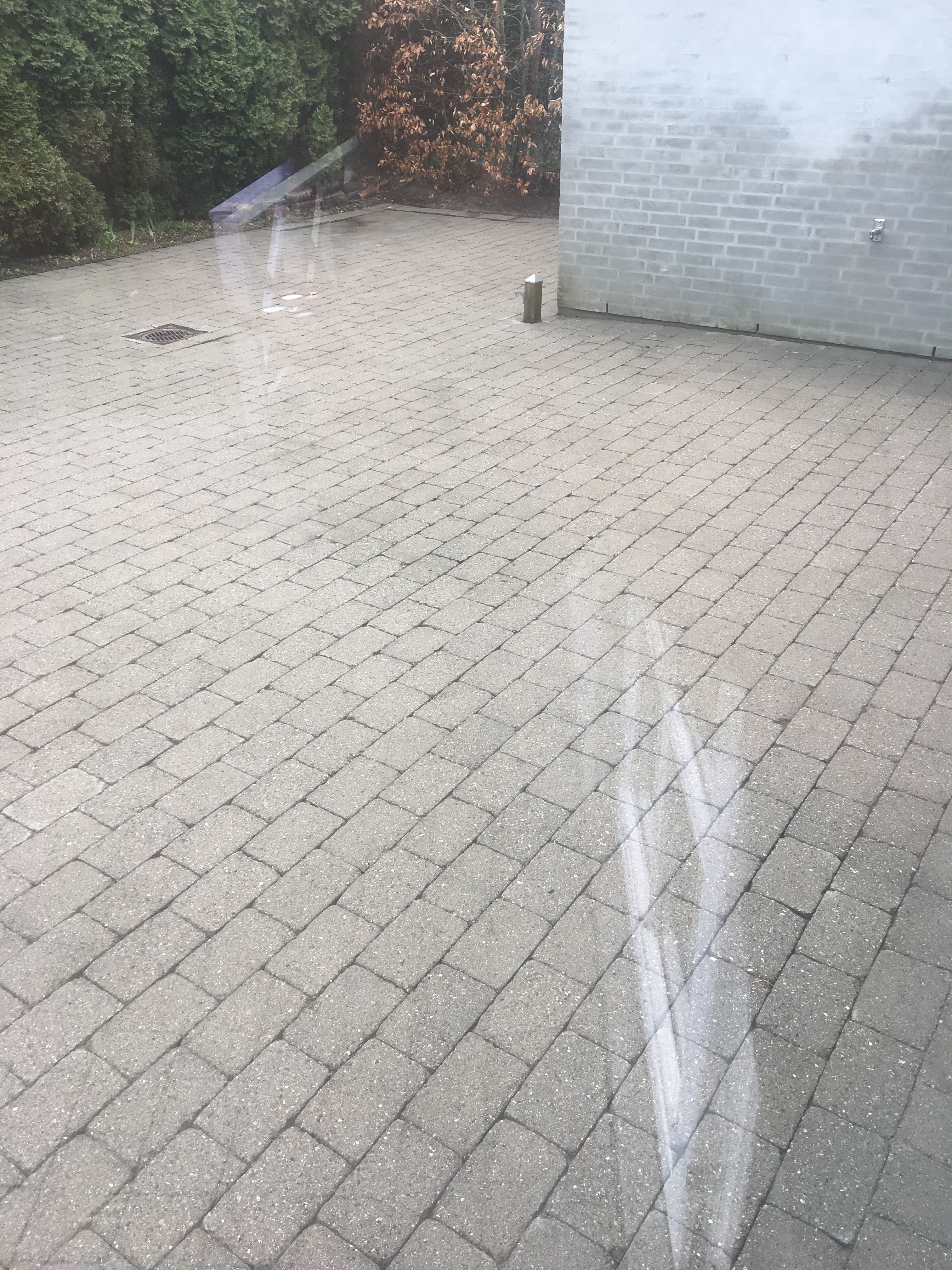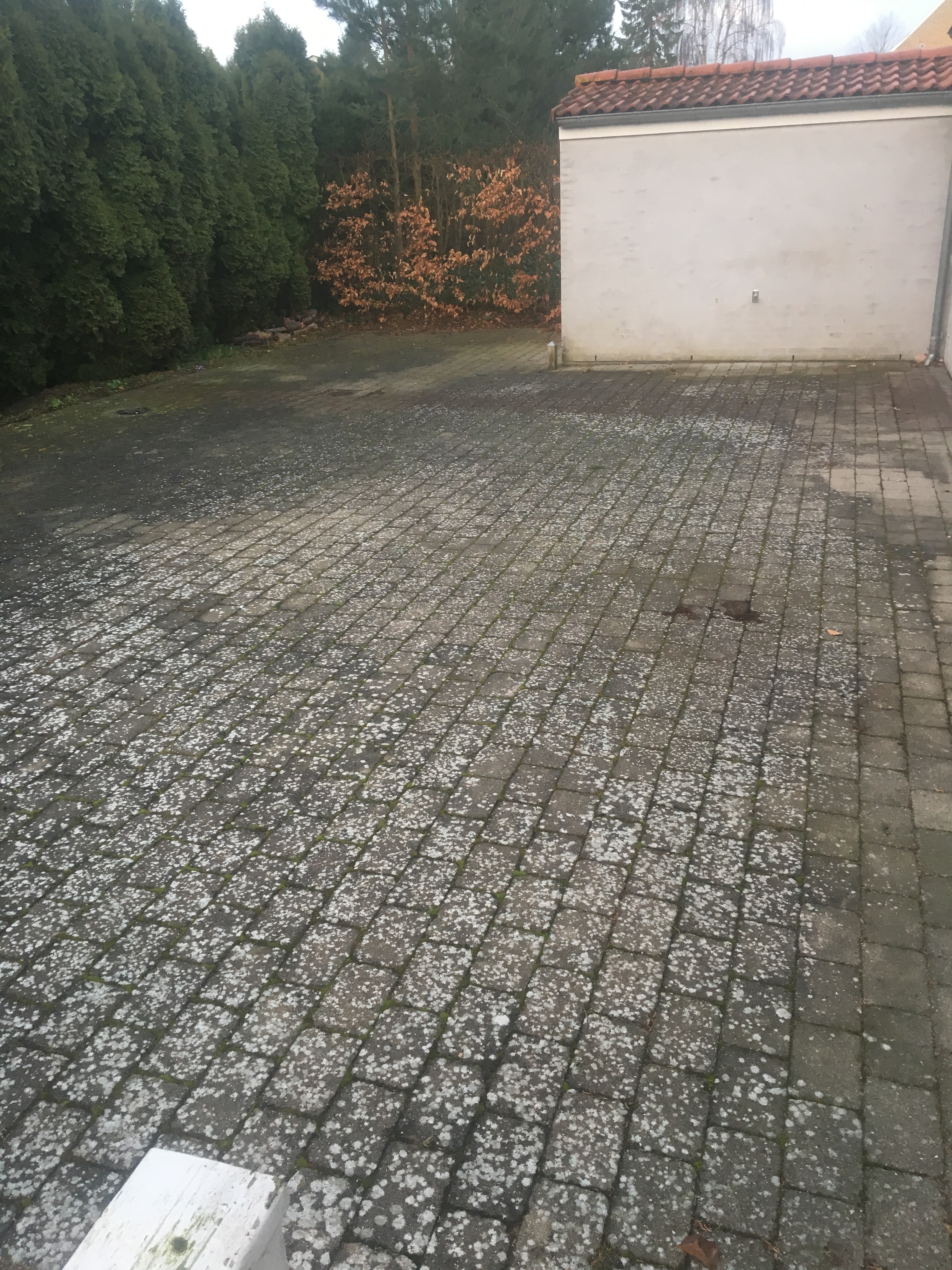 Vejret var ideelt, tørt og solrigt den dag fliserne blev afrenset og algebehandlet med et godt resultat. 7 dage senere, solenskin næsten vindstille, firmaet imprægnerede fliserne. 7 dage senere, stadig solskin, tørvejr og næsten ingen vind. Firmaet udlagde fugesand med omhu så alle fuger var tilfredsstillende fyldt. Firmaet efterlod en 1/2 pose fugesand til evt. efterhjælp, hvilket ikke har være nødvendig.