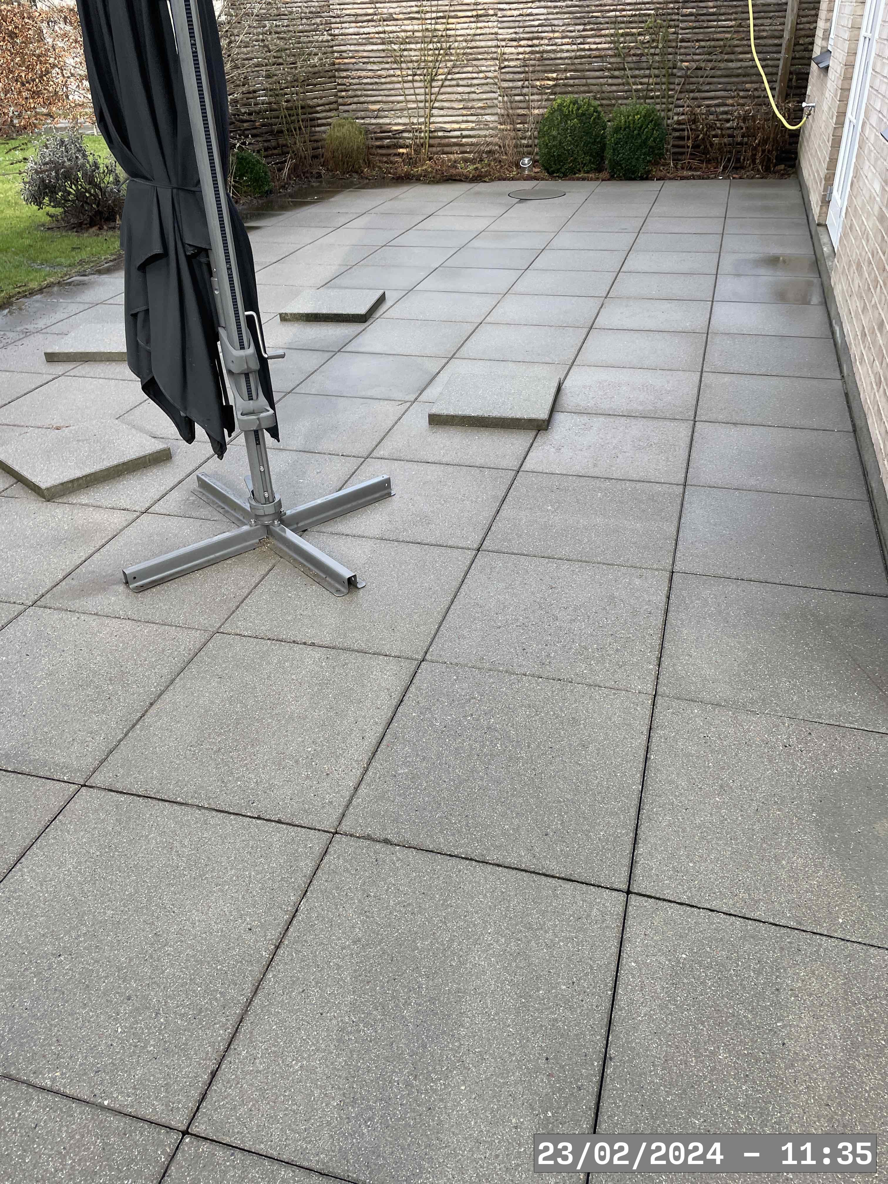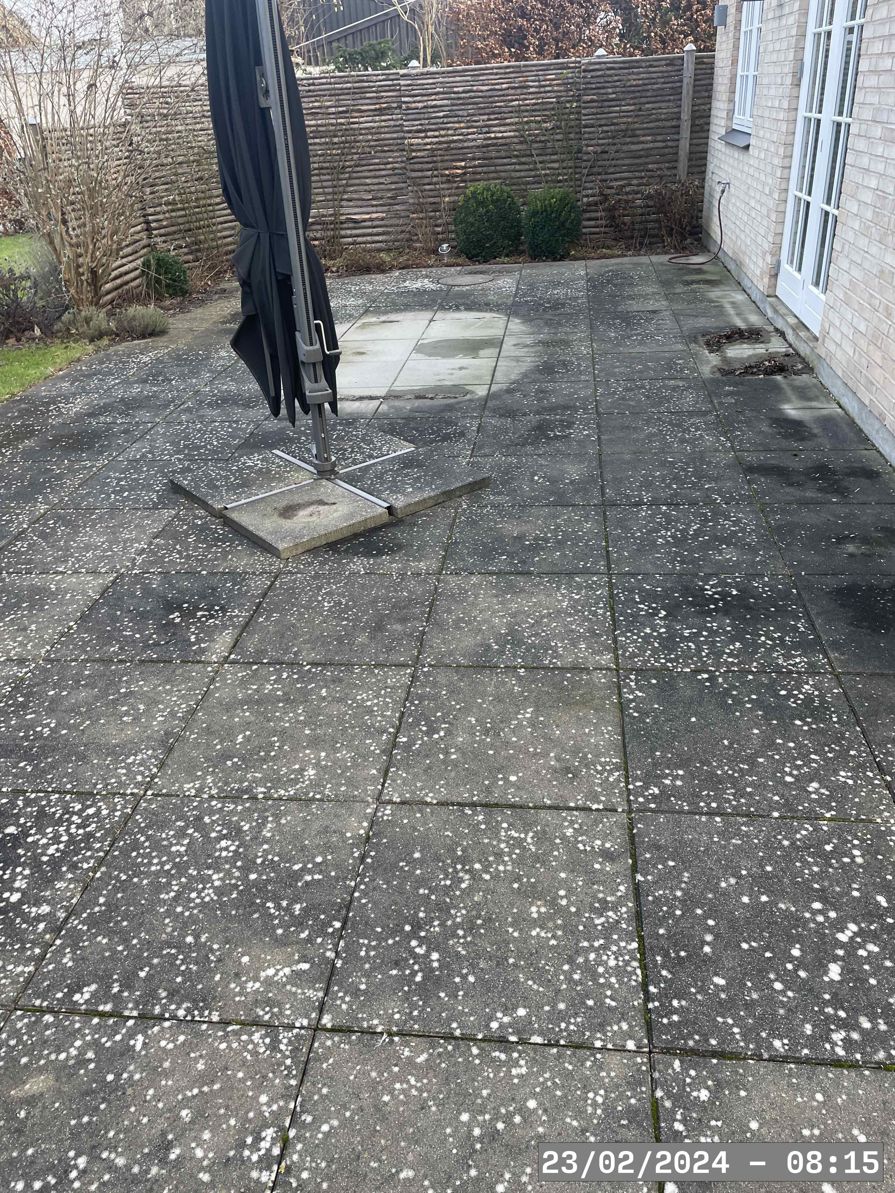 Vi får behandlet vores fliser hvert forår, og vores fliser holder sig pæne, selv steder der normalt ville være angrebet af alger og andet snavs.