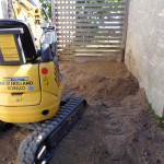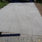 ved at de gravede en rende og støbte en lille betonmur langs indkørslen. Nu