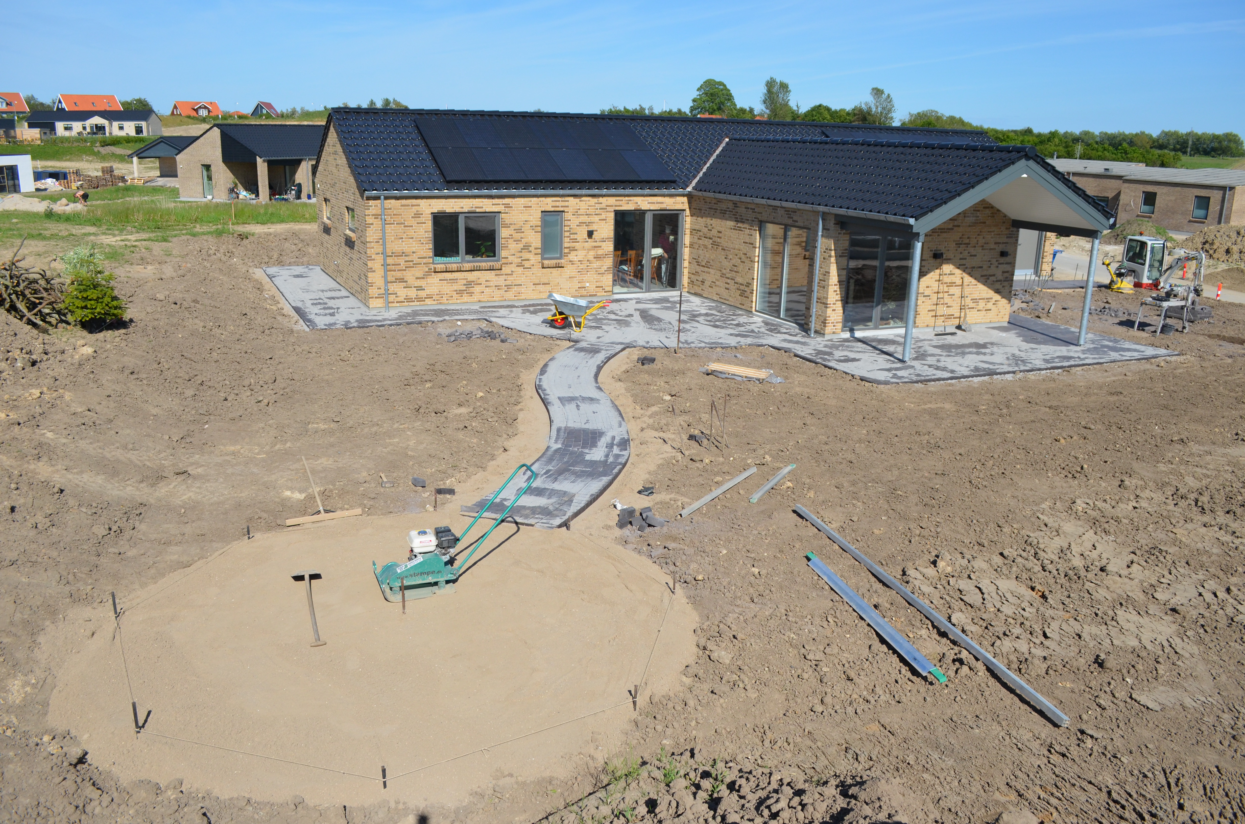 Det blev til en forholdvis stor indkørsel, fliser rundt om huset og en