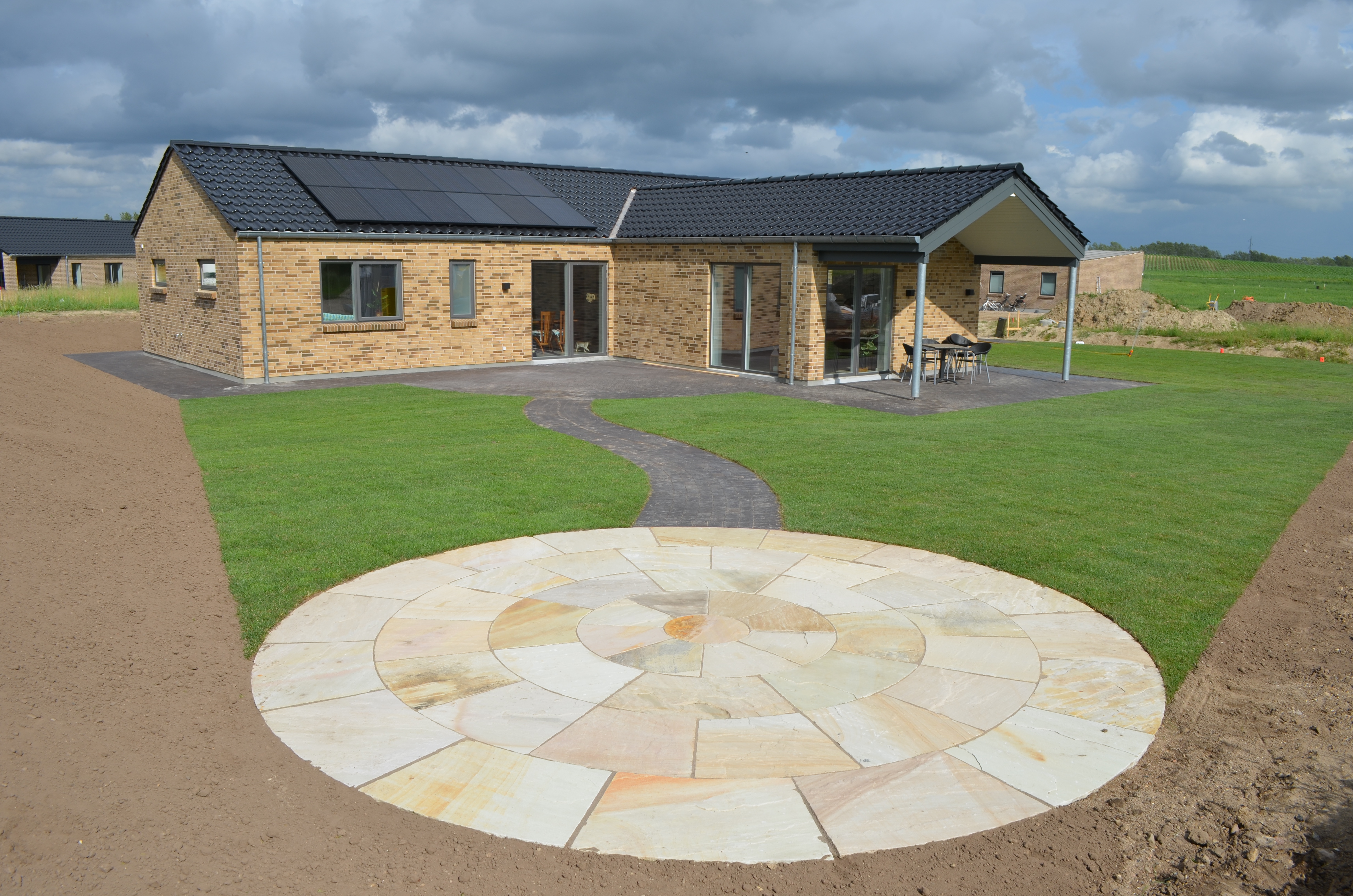 Fik lavet terasser, trapper, indkørsel og genetableret haven efter nybygning