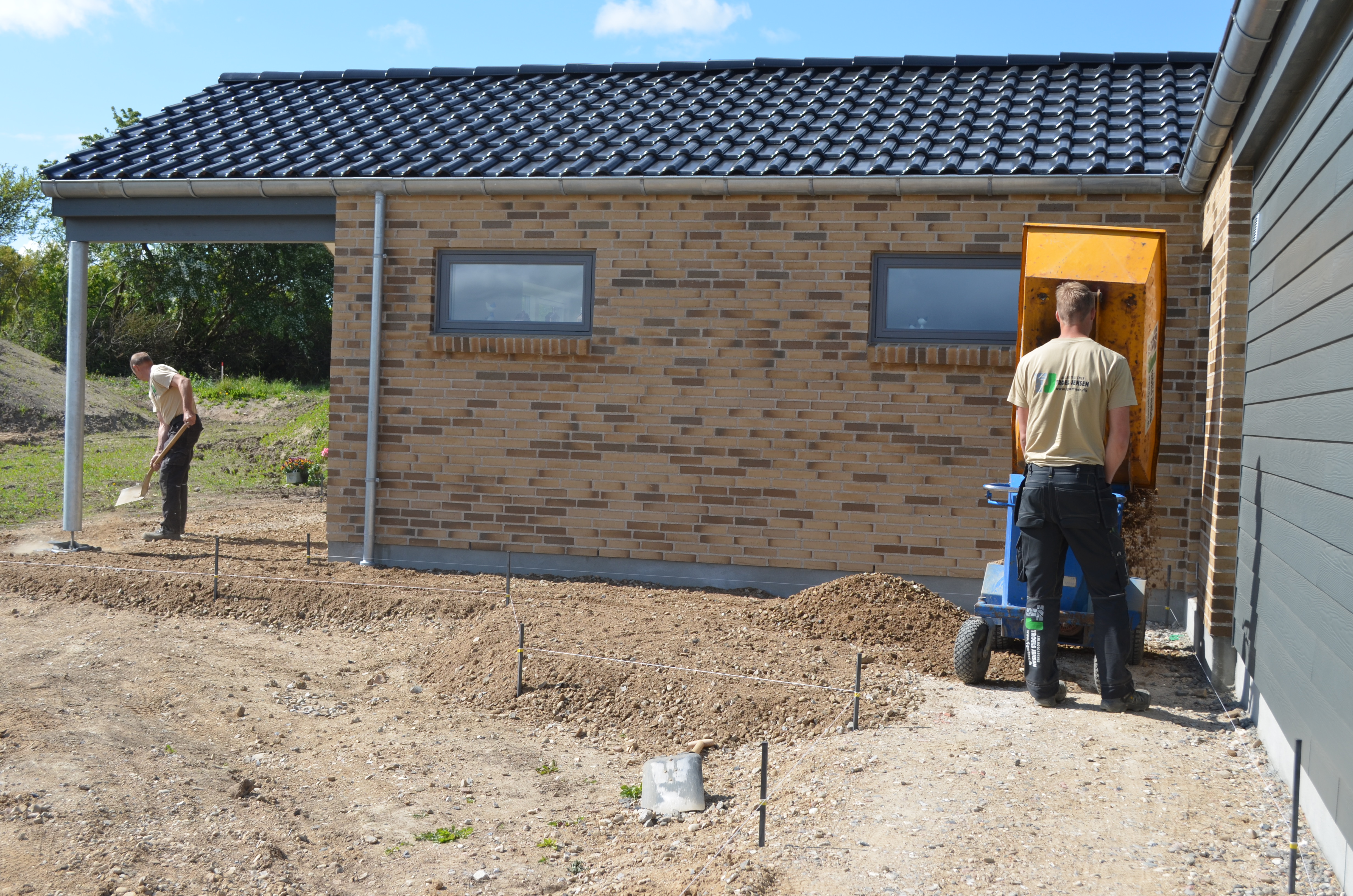 Vi skulle lægge fliser, plankeværk ude foran mod vejen, plante græs og