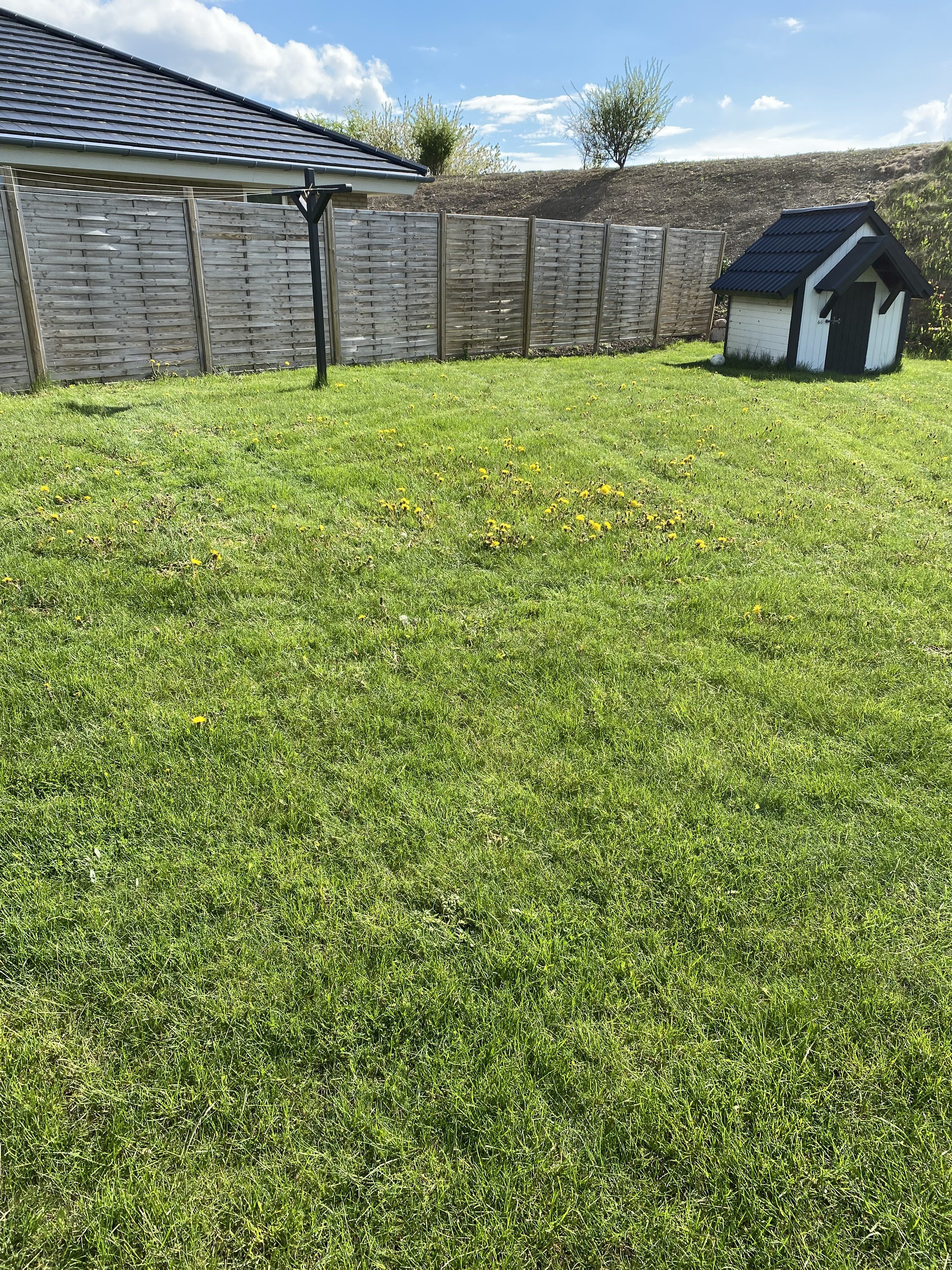 Der kom en ældre mand som, med håndkraft flere steder, strøgede hhv gødning og noget ukrudtsmiddel ud. Der stod at der var ukrudtbekæmpelse og i min forhave kan jeg godt se at der er røget en del mælkebøtter, men i baghaven (som er 4 gange så stor som forhaven), er det kun gødningen der kan ses. Mælkebøtterne lever i bedste velgående her 2-3 uger efter de var der. Jeg synes 4000 kr er mange penge for en gang gødning.