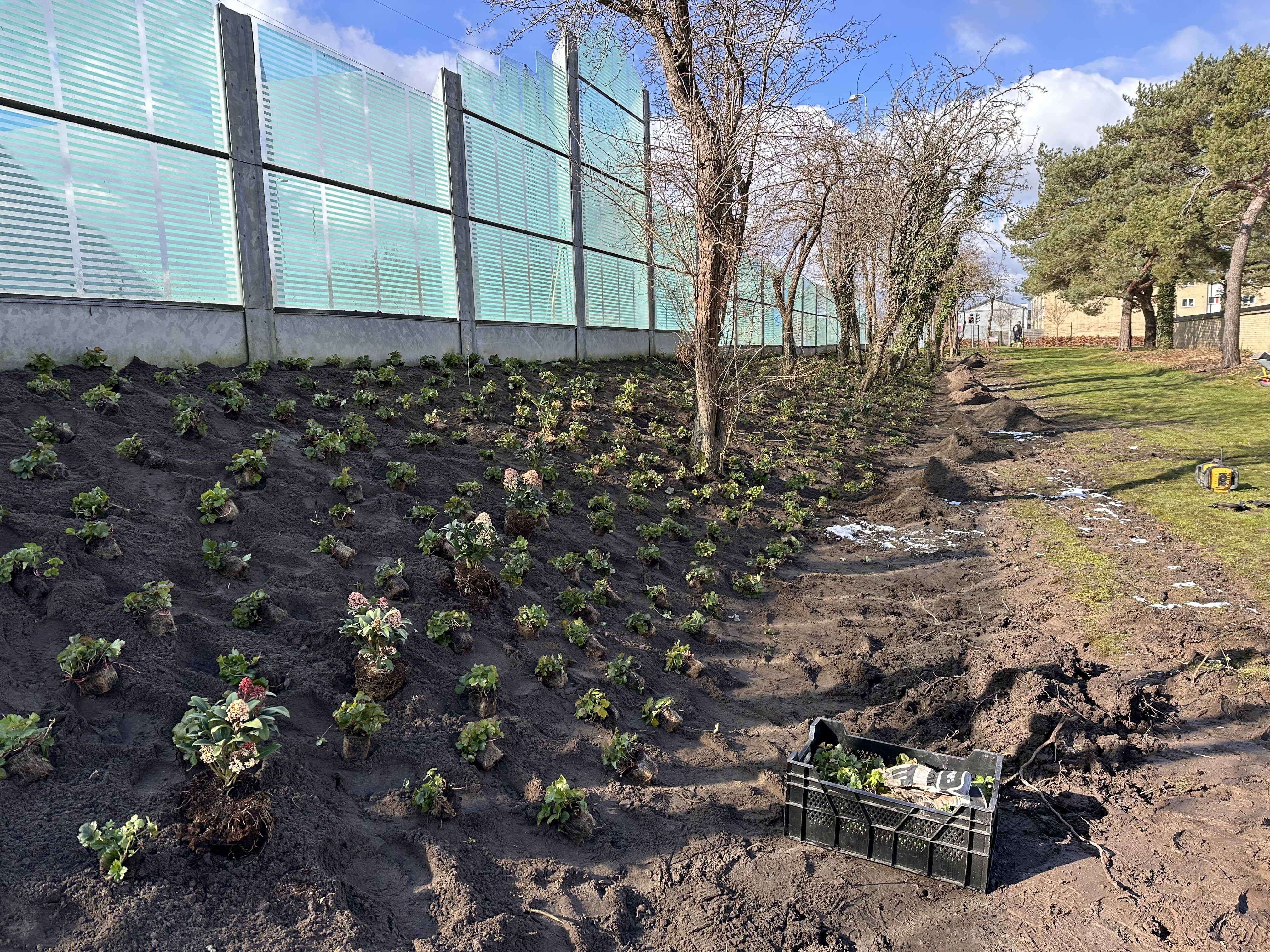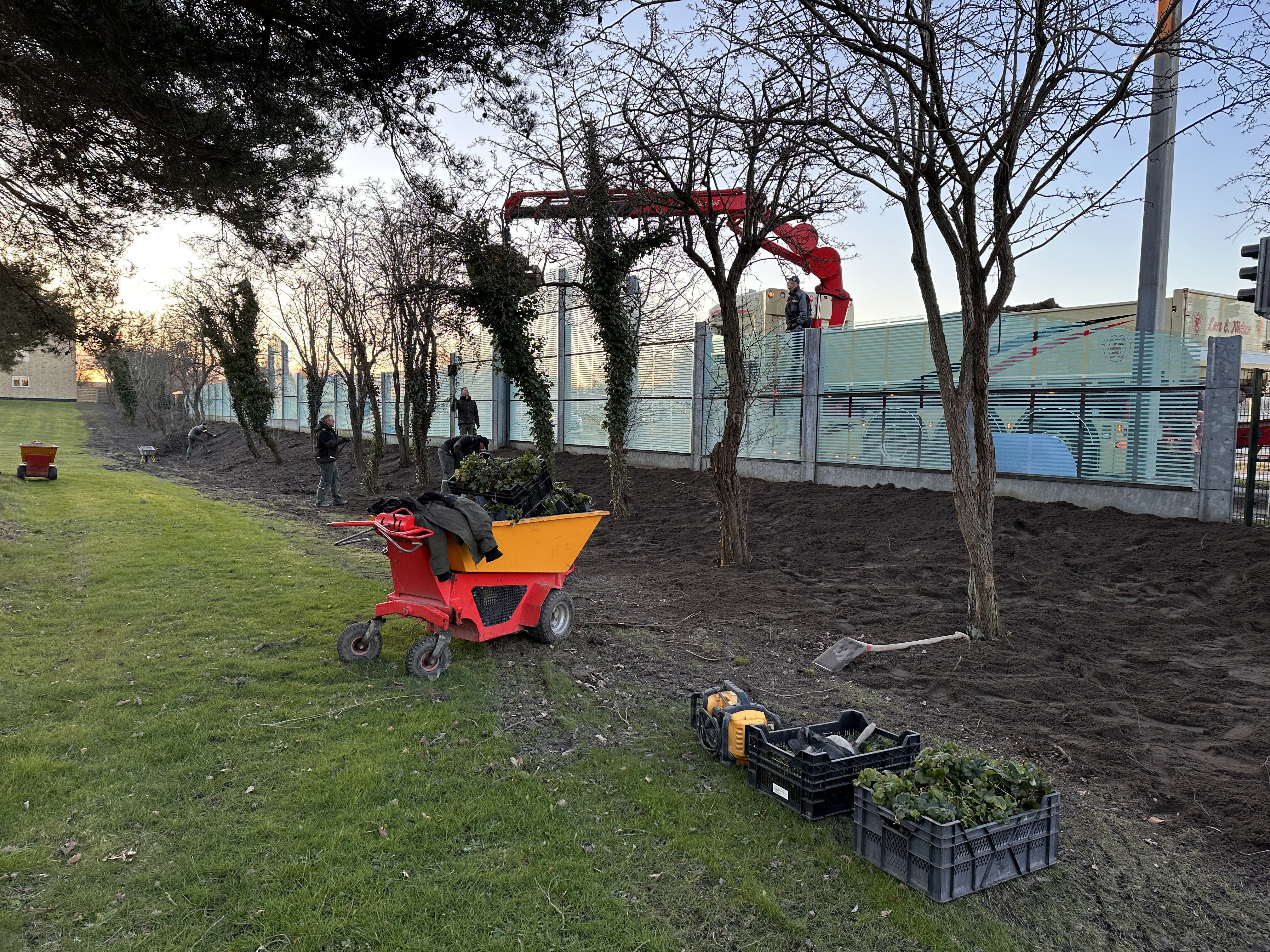 Gartnerne har ryddet haven for ukrudt, klippet hækken og fjernet ½ meter højt græs og nedlagt et tilgroet bed.
