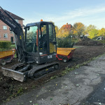 Lagt nyt slotsgrus i indkørsel. Hævet fliser der havde sat sig. Plantet sydbøg i stedet for gammel der var væltet i storm.