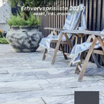 Vi har fået udført en ny stor flot terrasse med skifferfliser samt planter ny færdighæk mod vores nabo.