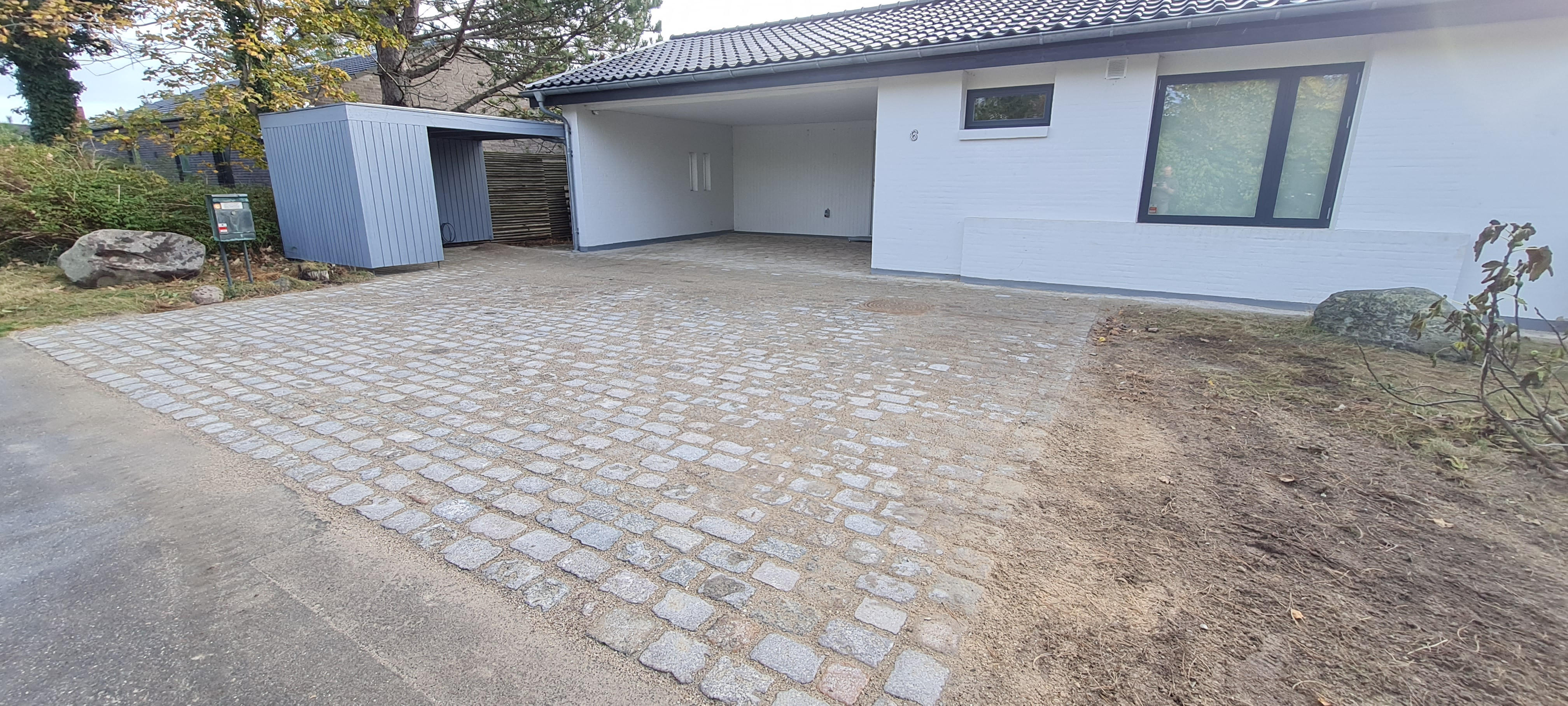 Et spændende projekt med at anlægge ny forhave og indkørsel samt bedkanter mm i baghaven.