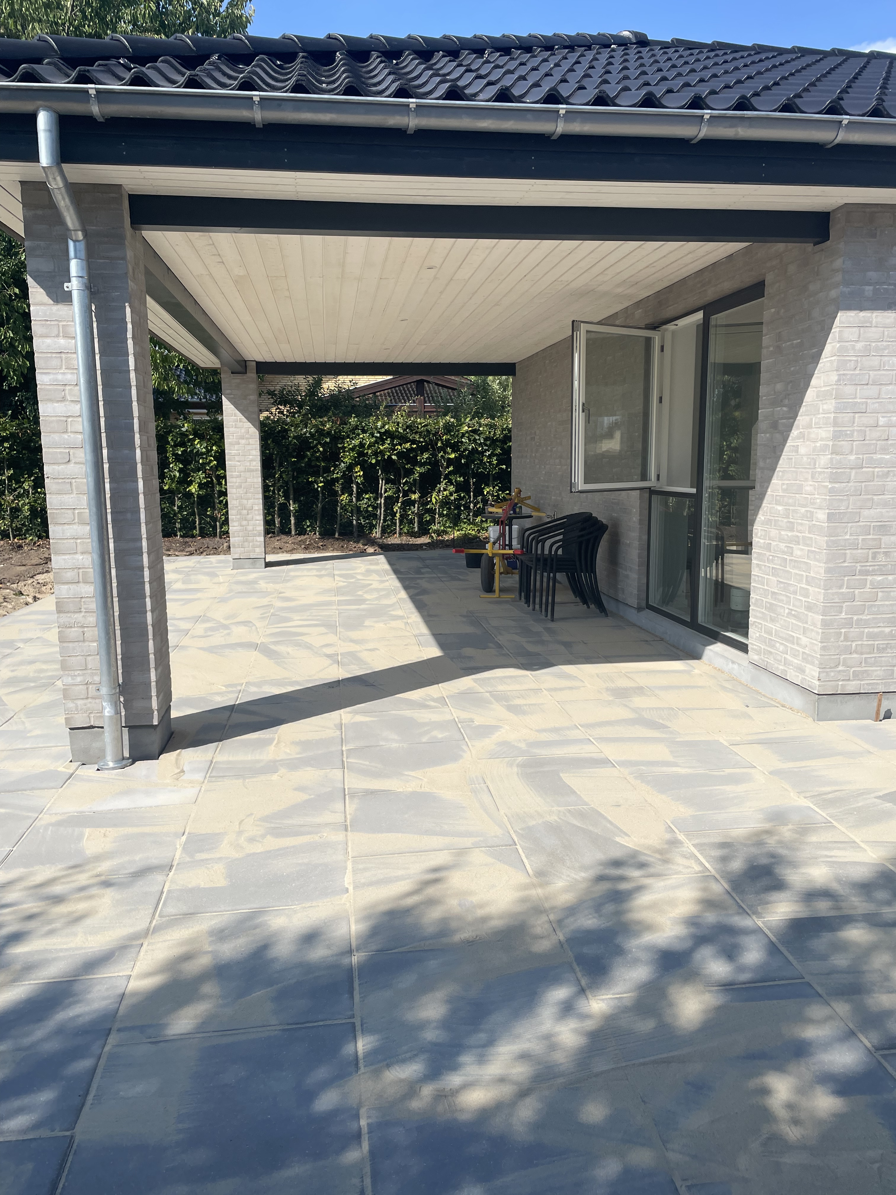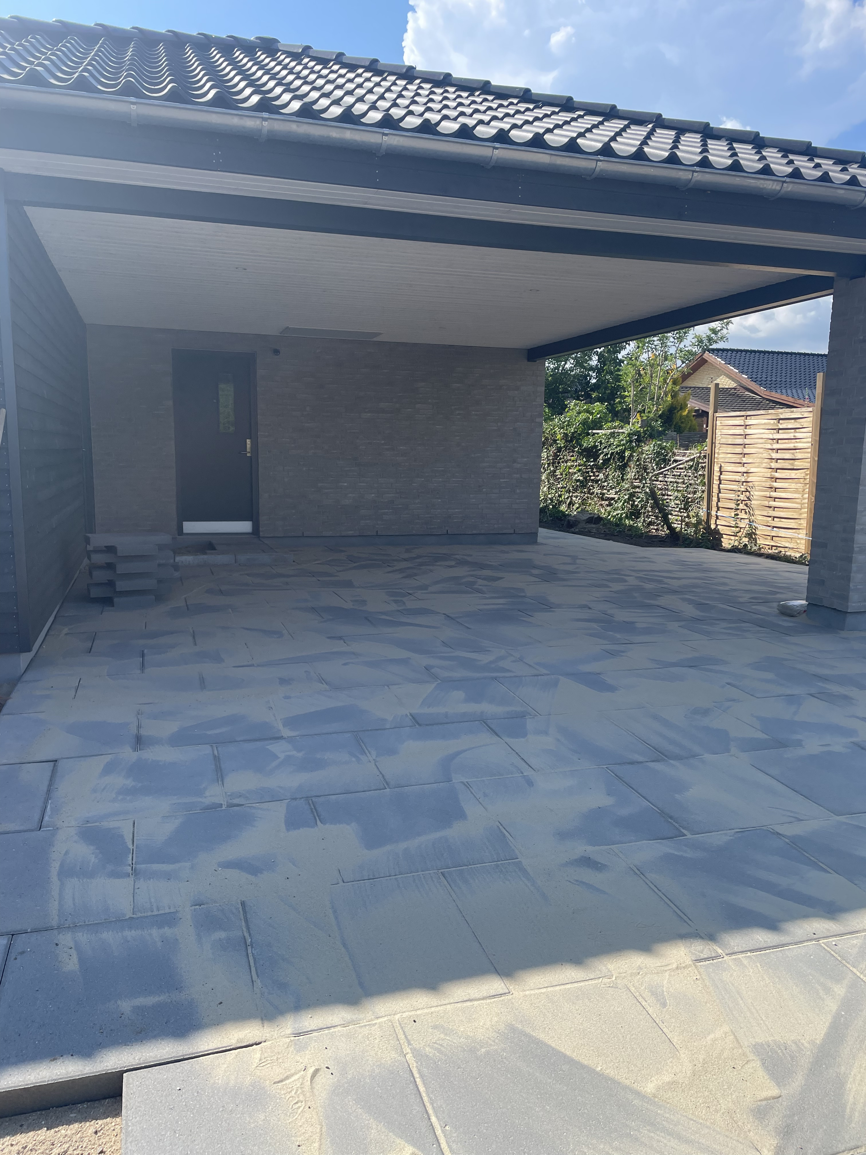 Vi har fået etableret en markise på terrasse, der gjorde at vi måtte pille 4 fliser op fra tidligere udført arbejde.