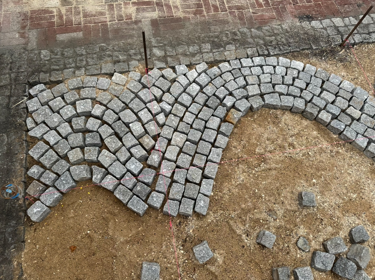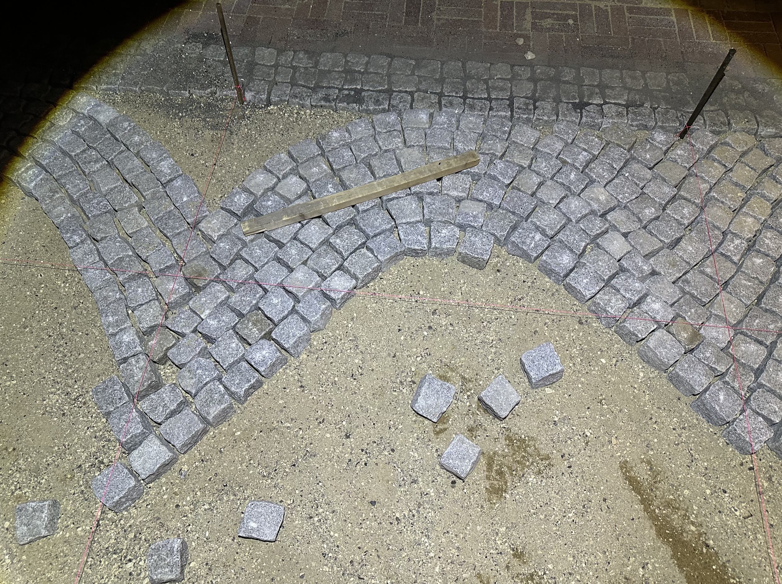 Fejebakken skulle sætte ca 95 m2 chaussesten i buesætning for mig.