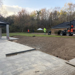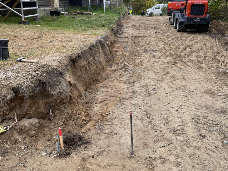 Denne gang er der fjernet små fliser og grus og pålagt jord i en tidligere indkørsel. En skråning som har været bevokset med buske er gjort klar til såning af græs og plantning af frugttræer.