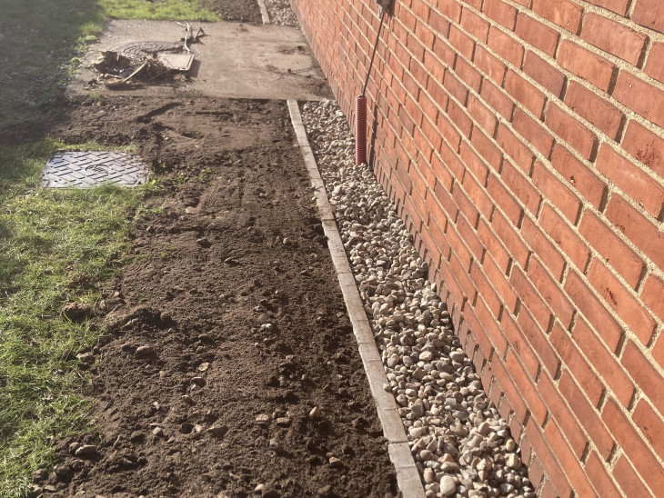 Vi fik lagt fliser på både indkørslen og terrassen, og vi er meget tilfredse med resultatet.