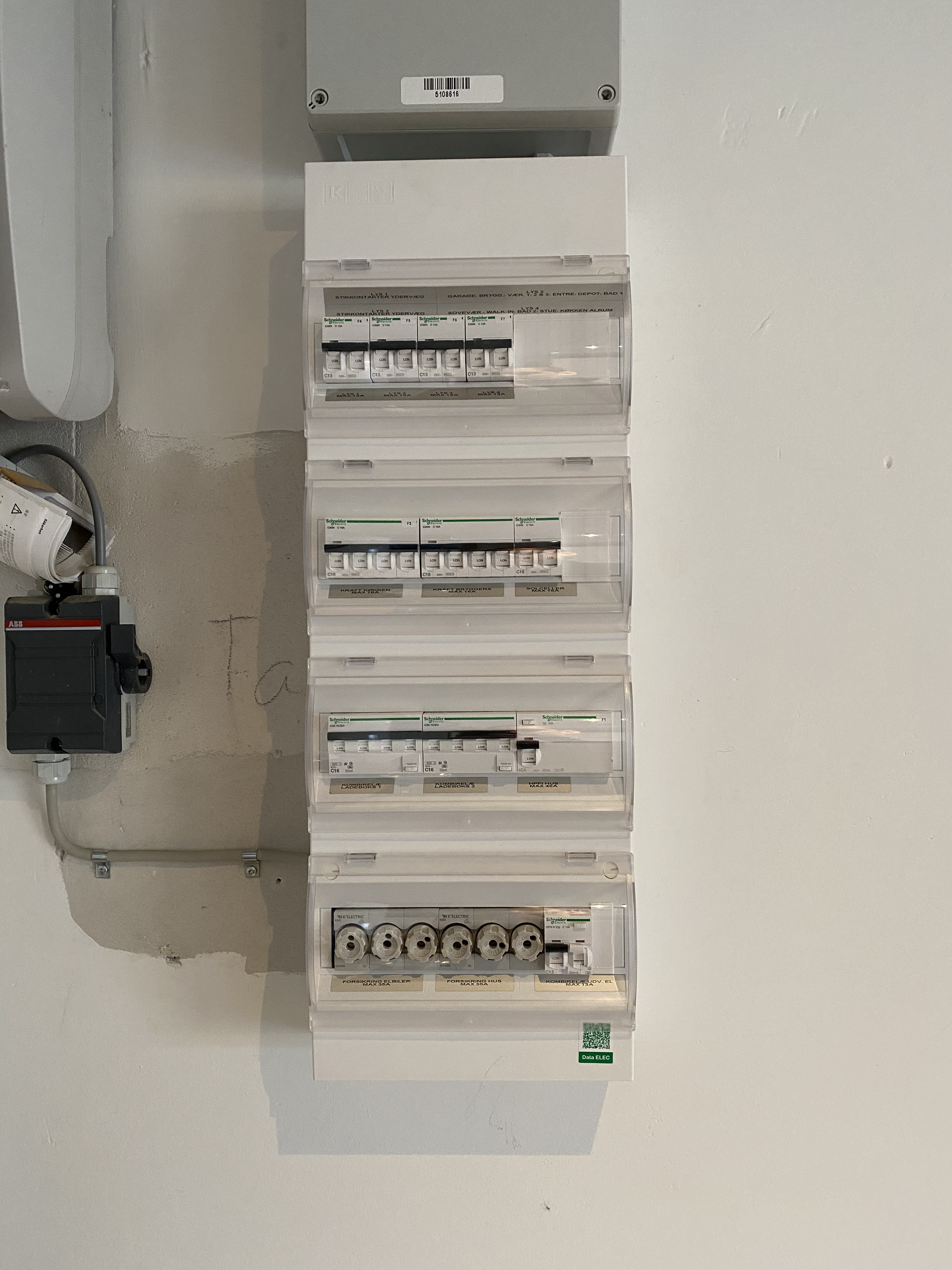 Dagen efter kom elektrikeren, og gik i gang med arbejdet. Han var meget detaljeorienteret og kompetent, og efterlod et rigtig flot stykke arbejde.