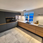 Div. el-arbejde i køkken, stikkontakt til køleskab og opvaskemaskine. Opsætning af lamper i hele lejligheden. Opsætning af emhætte og tilslutning af strøm. Afhentet og udskiftet dørtelefon. Udskiftning af tangenter