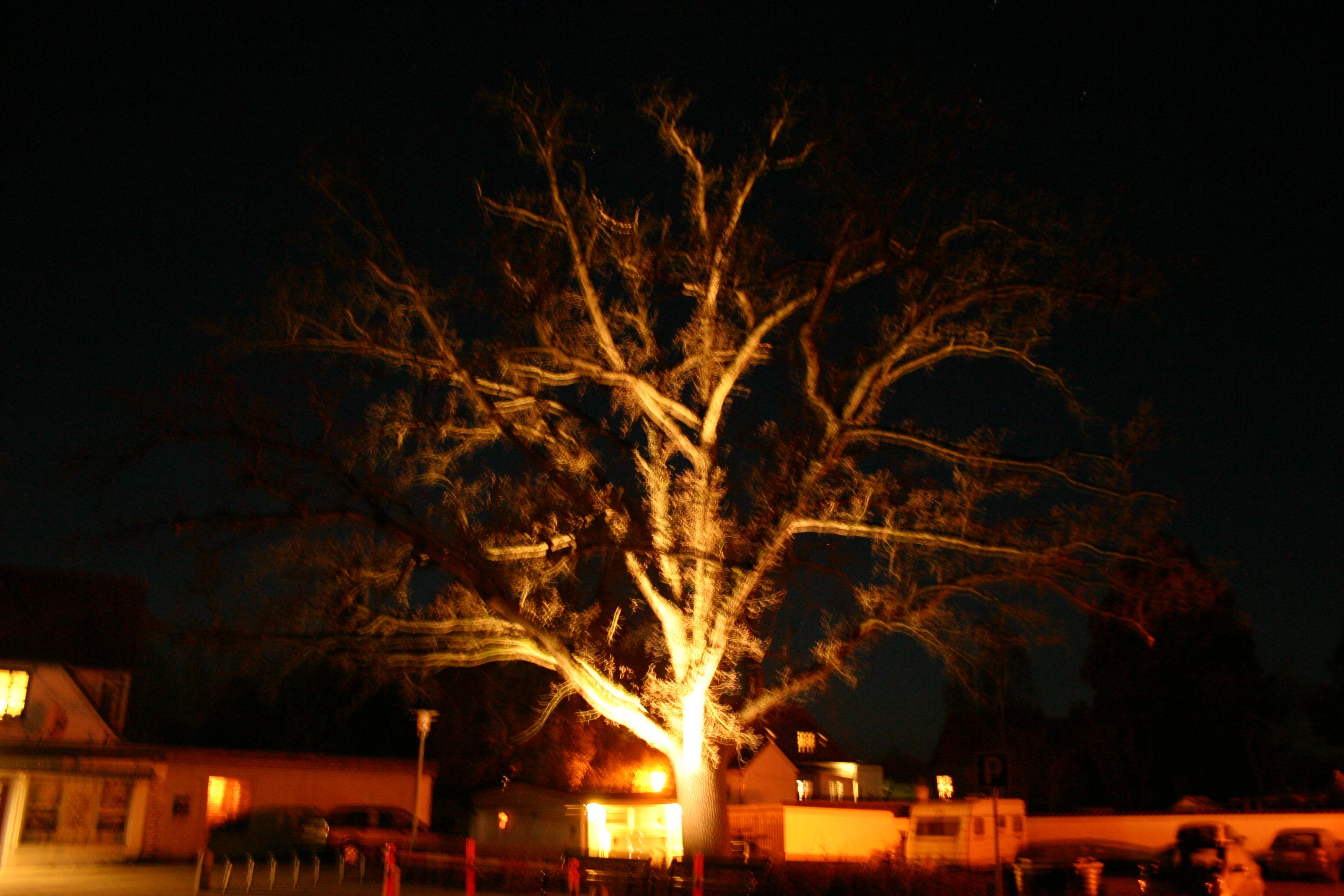bevaringsforeningen med at etablere belysning af et egetræ på en af byens