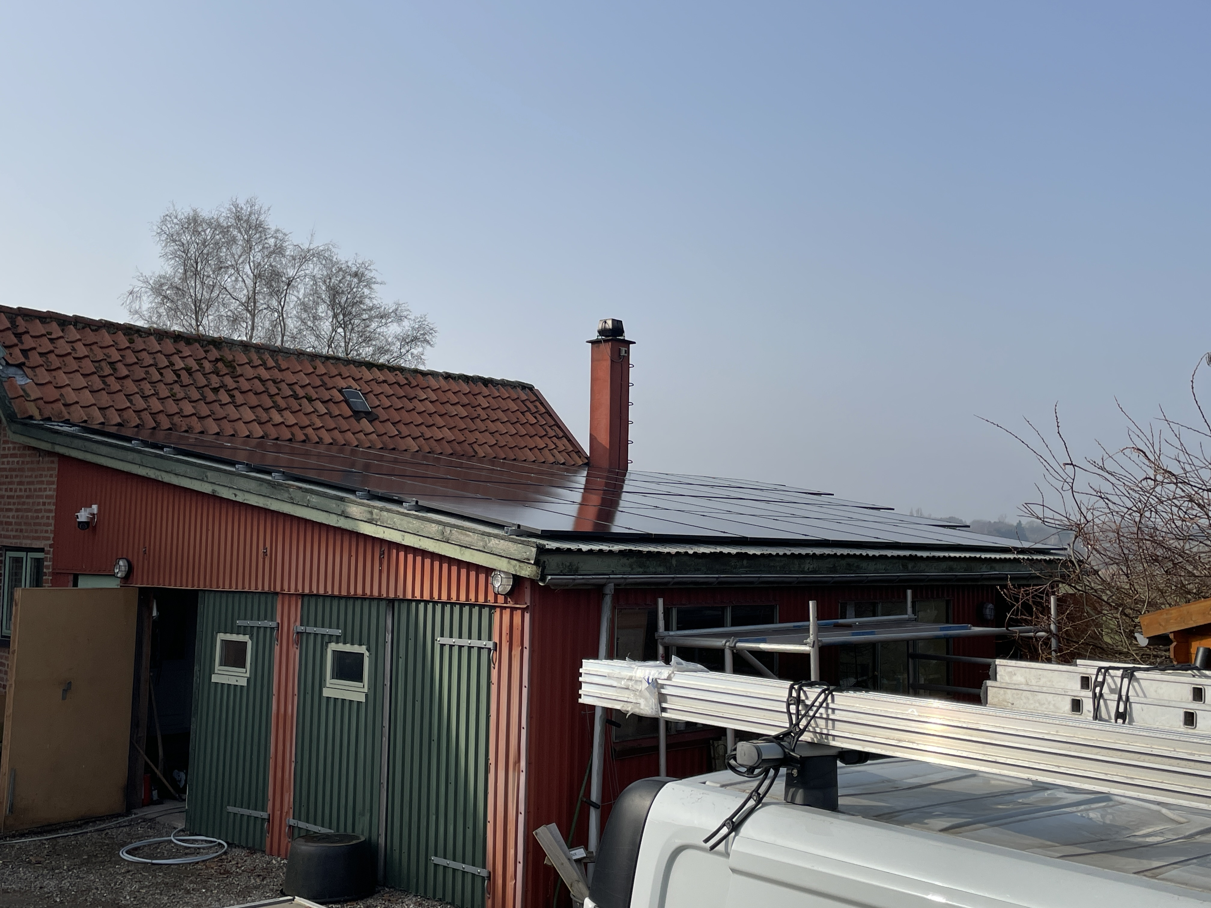 Vi har idag fået monteret et solcelleanlæg på vores sydvendte tag, og alt er gået hurtigt og efter planen, bortset fra at vi desværre først måtte få udsat projektet grundet sygemelding.