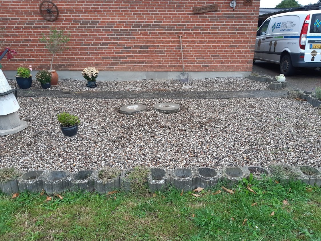 Han kom og gav et tilbud på arbejdet. Og dette arbejde er blevet udført meget fint. Vi var ikke hjemme da det blev lavet, men fik sendt billeder af gravearbejdet. Alt var ryddet på plads og ordnet da vi kom hjem.