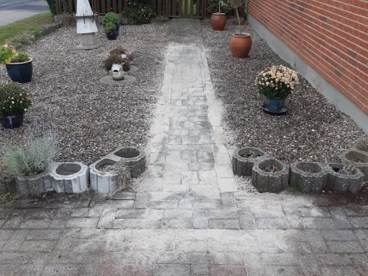 Tak for at vi fik lov til at lave jeres nye indkørsel, den blev da fin med de 30x30 fliser og den fine finish vi lavede ude i kanten med muldjord. (se billede)