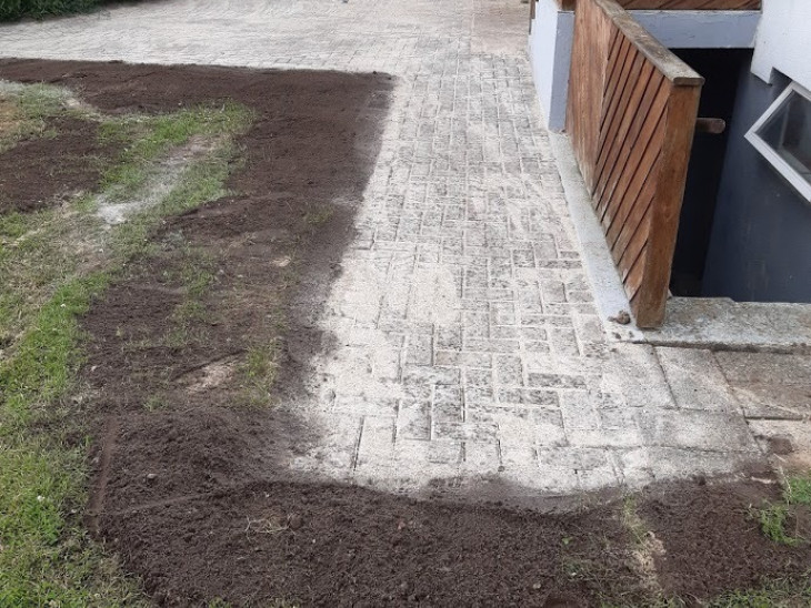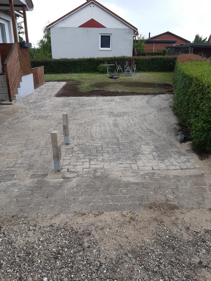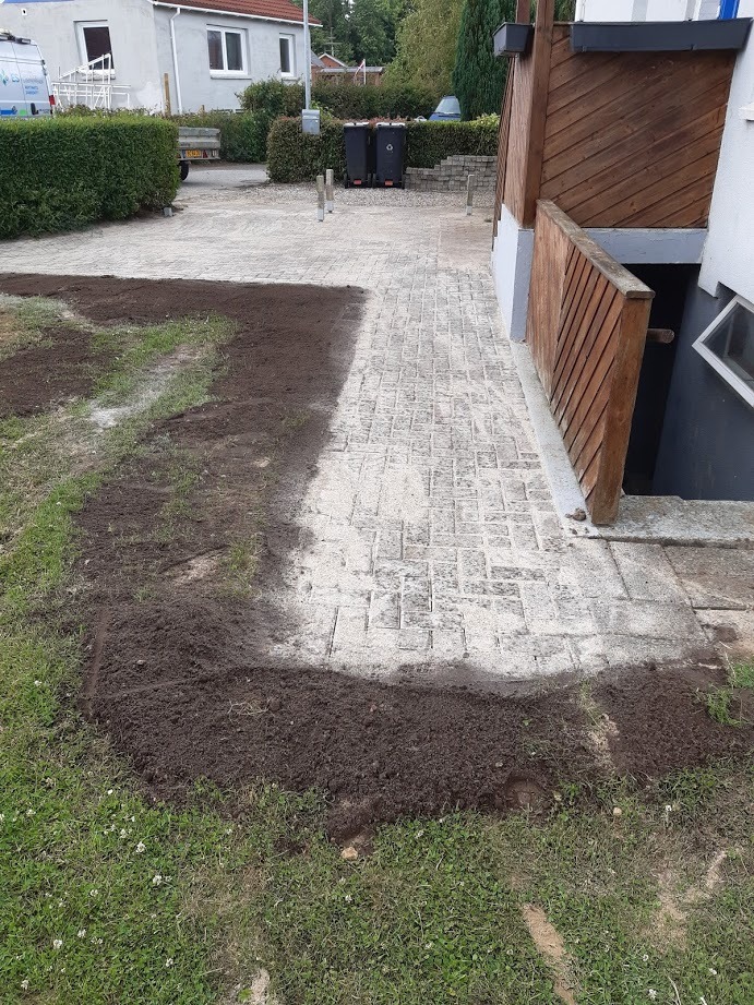 Tak for at vi fik lov til at lave jeres nye indkørsel, den blev da fin med de 30x30 fliser og den fine finish vi lavede ude i kanten med muldjord. (se billede)