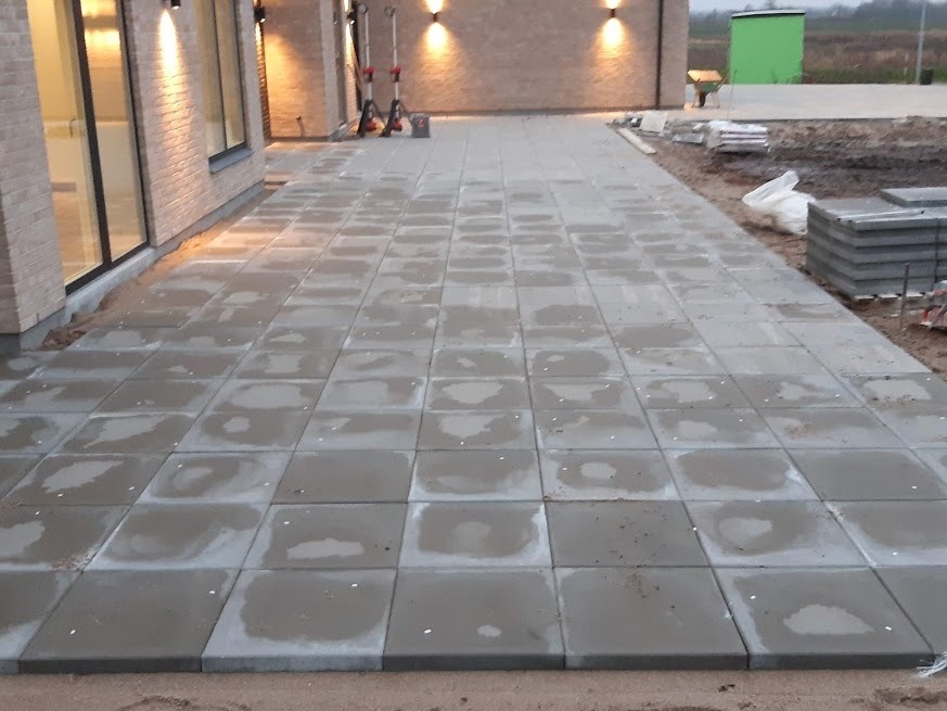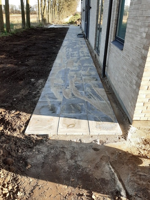 Tak for at vi fik lov til at lave jeres nye indkørsel, den blev da fin med de 30x30 fliser og den fine finish vi lavede ude i kanten med muldjord. (se billede)
