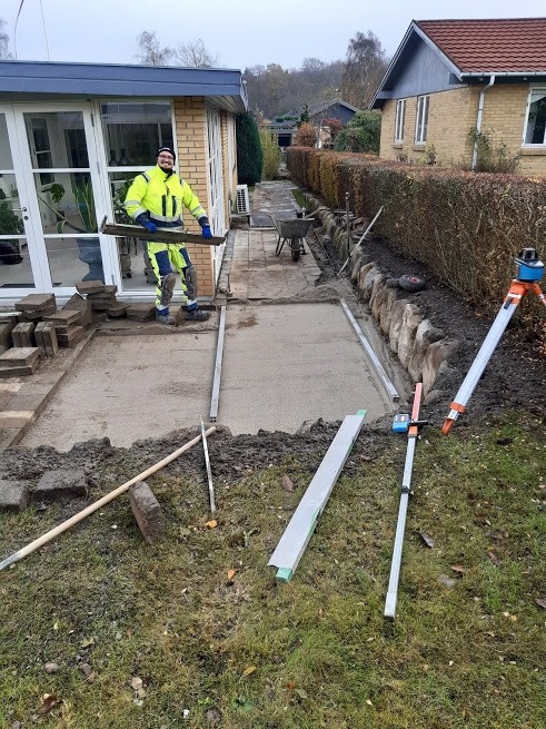 Tak for at vi fik lov til at lave jeres nye indkørsel, den blev da fin med de 30x30 fliser og den fine finish vi lavede ude i kanten med muldjord. (se billede)