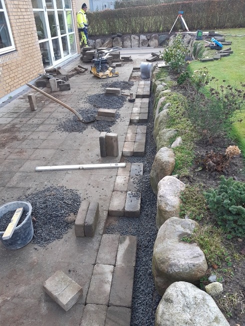 Der har været en del opgaver så som dræn, stor stenmur og belægningsarbejde.