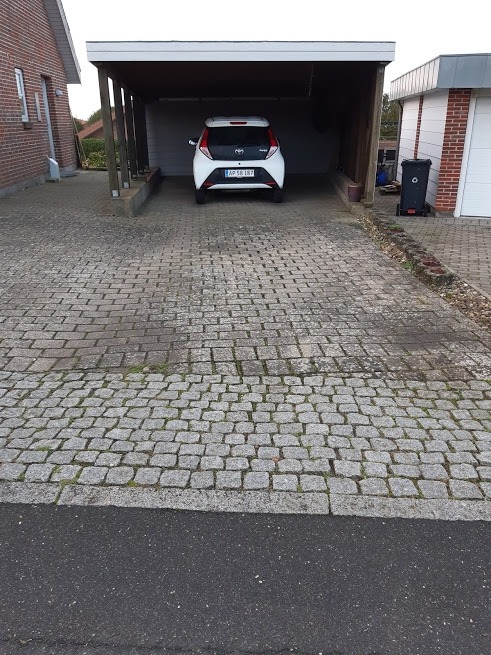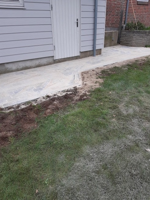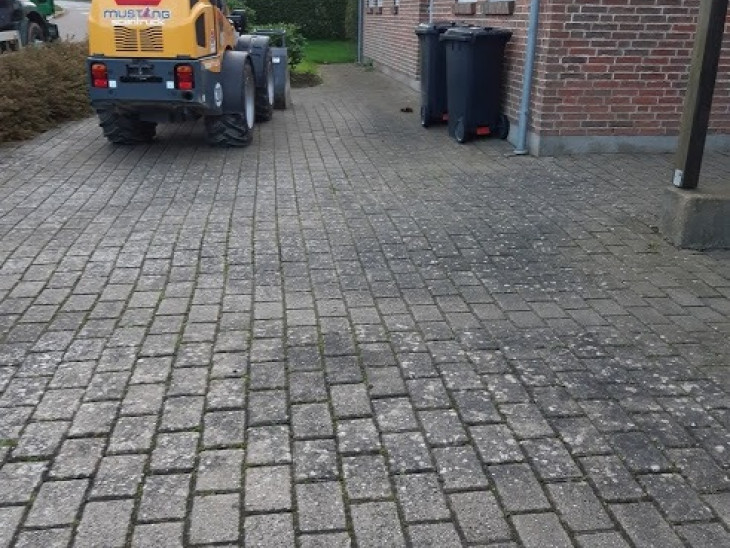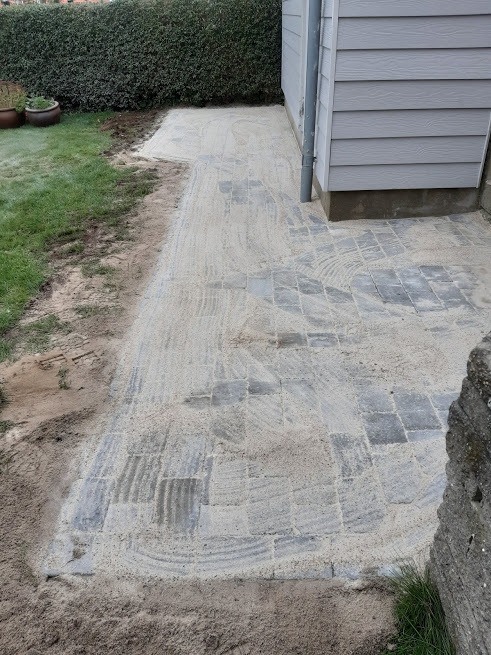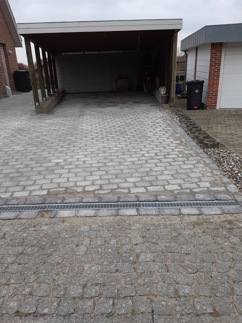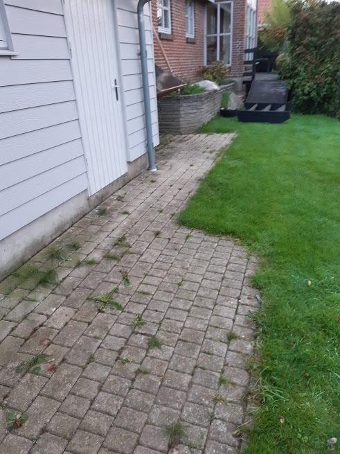 Det er blevet et flot resultat, ny indkørsel, indgangsparti og gangsti ved skuret bagved.