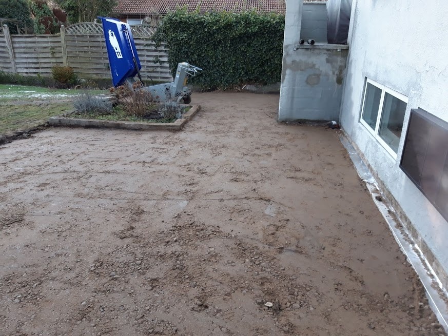 Tak for at vi fik lov til at lave jeres nye indkørsel, den blev da fin med de 30x30 fliser og den fine finish vi lavede ude i kanten med muldjord. (se billede)