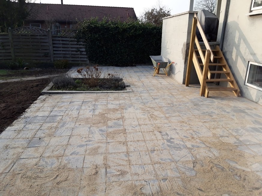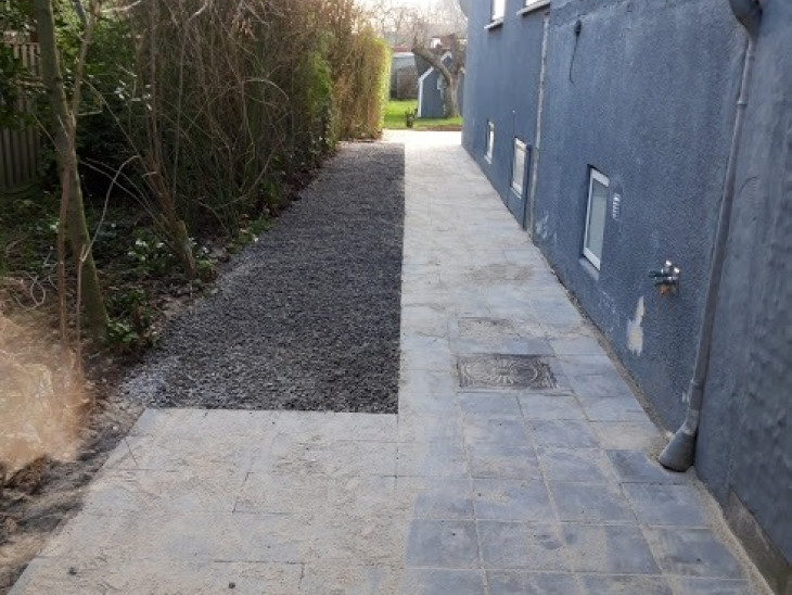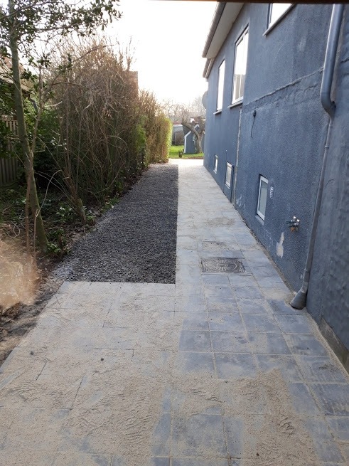 Eksisterende belægninger der har taget skade under arbejdet, er nu blevet lagt om og ligger lige så pænt som den nye belægning.