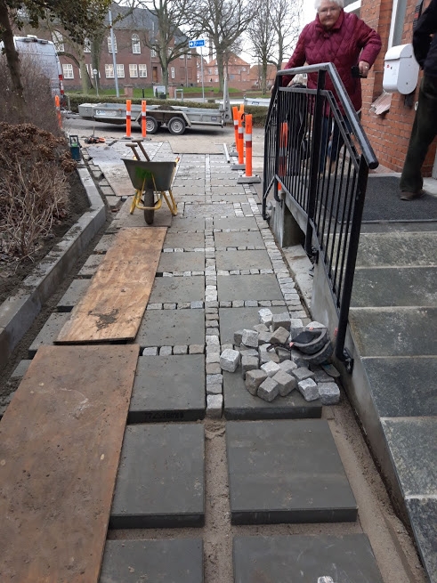 Tak for at vi fik lov til at lave jeres nye indkørsel, den blev da fin med de 30x30 fliser og den fine finish vi lavede ude i kanten med muldjord. (se billede)