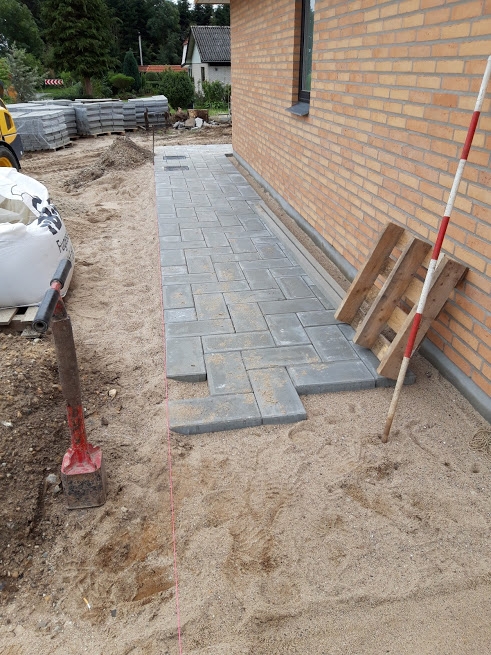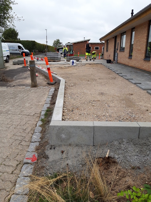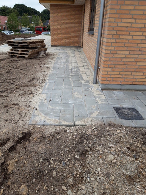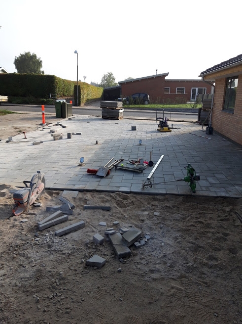Tak for at vi fik lov til at lave jeres nye indkørsel, den blev da fin med de 30x30 fliser og den fine finish vi lavede ude i kanten med muldjord. (se billede)