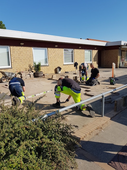 Tak for at vi fik lov til at lave jeres nye indkørsel, den blev da fin med de 30x30 fliser og den fine finish vi lavede ude i kanten med muldjord. (se billede)