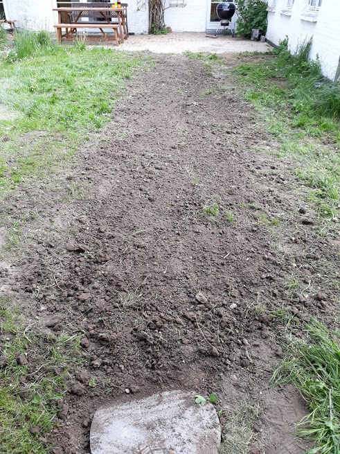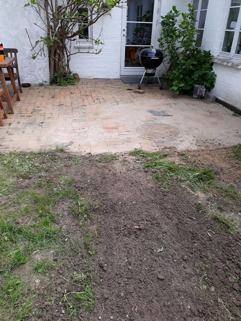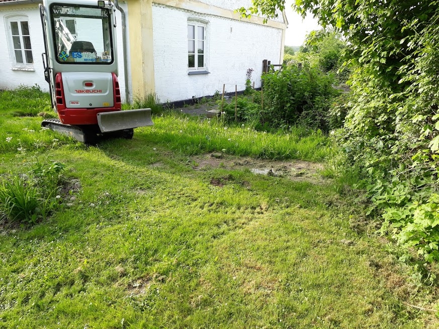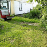 Ved en masse regn og kloakering kan det ødelægge haven totalt, så det har været nødvendigt at vente for at kunne have en pæn græsplæne til kunden når vi var færdige.