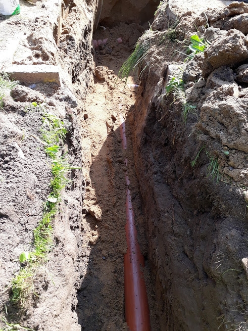 Kloakeringen gik næsten som planlagt, kunne ikke rigtig komme igang 1.e gang vi havde planlagt det da der var regn og for ikke at ødelægge græsplænen ventede vi med det indtil vejret var fint til det igen.
