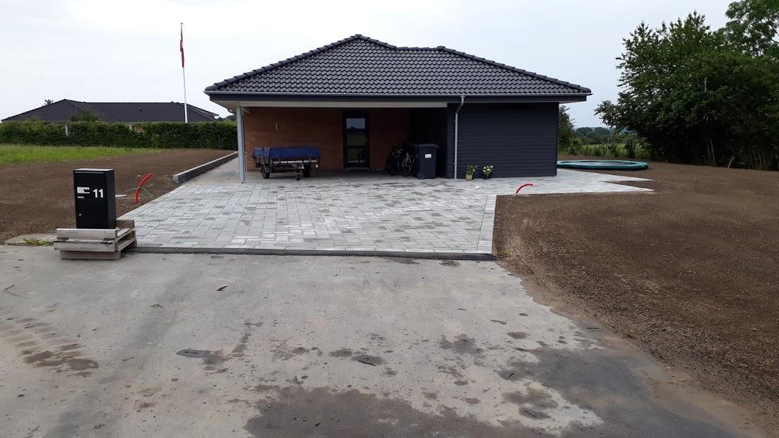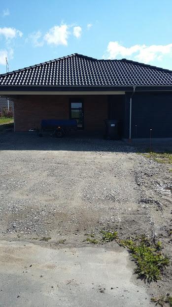 Tak for at vi fik lov til at lave jeres nye indkørsel, den blev da fin med de 30x30 fliser og den fine finish vi lavede ude i kanten med muldjord. (se billede)