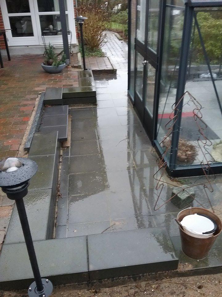 Tak for at vi fik lov til at lave jeres nye indkørsel, den blev da fin med de 30x30 fliser og den fine finish vi lavede ude i kanten med muldjord. (se billede)