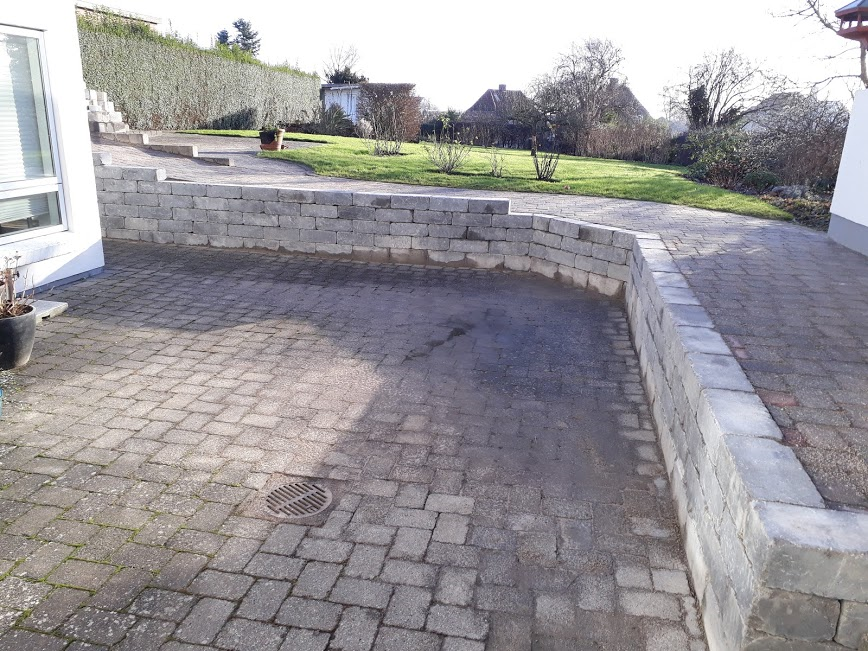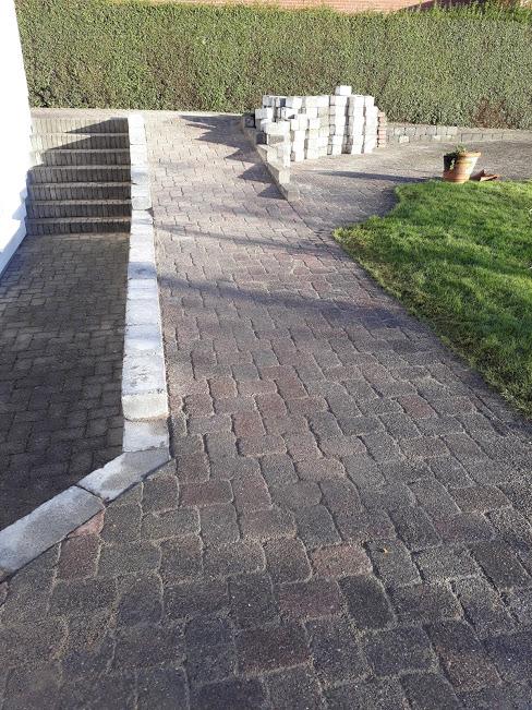 Tak for at vi fik lov til at lave jeres nye indkørsel, den blev da fin med de 30x30 fliser og den fine finish vi lavede ude i kanten med muldjord. (se billede)