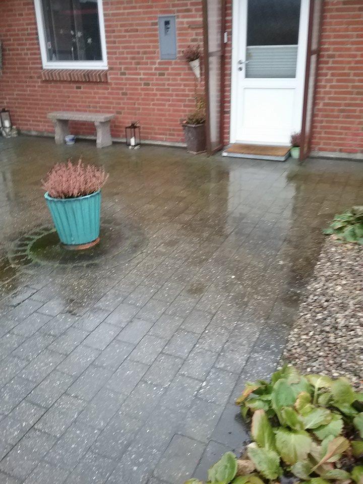 Tak for at vi fik lov til at lave jeres nye indkørsel, den blev da fin med de 30x30 fliser og den fine finish vi lavede ude i kanten med muldjord. (se billede)