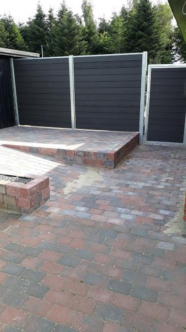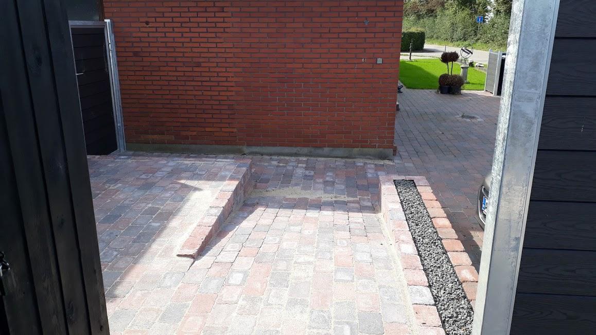 Det blev rigtig flot, og det pyntede med den sammensatte støttemur fra indkørsel og ind til rampen.