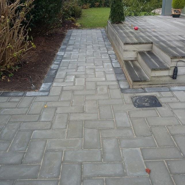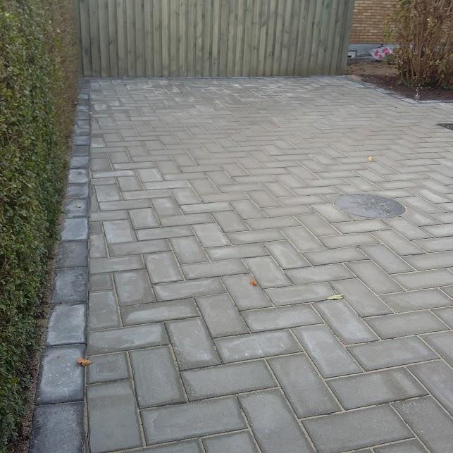 Tak for at vi fik lov til at lave jeres nye indkørsel, den blev da fin med de 30x30 fliser og den fine finish vi lavede ude i kanten med muldjord. (se billede)
