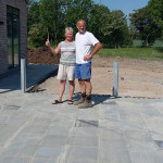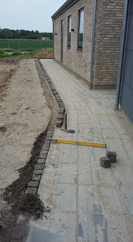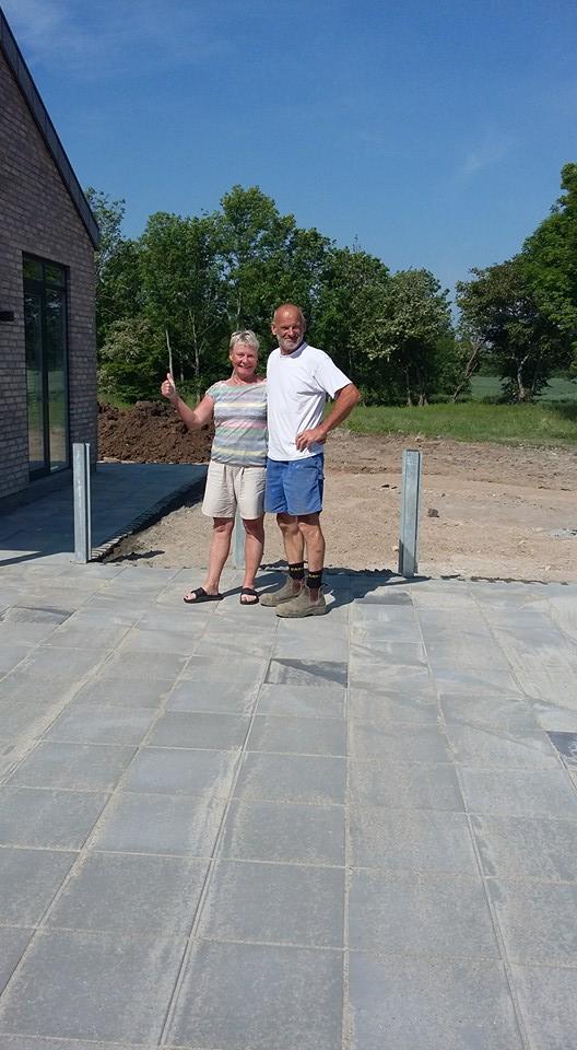 Tak for at vi fik lov til at lave jeres nye indkørsel, den blev da fin med de 30x30 fliser og den fine finish vi lavede ude i kanten med muldjord. (se billede)
