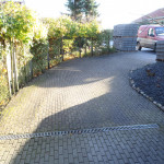 55 m2 indkørsel med trappe og 2 blomsterkasser, 70 m2 gangsti og støttemur rundt huset
