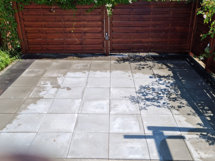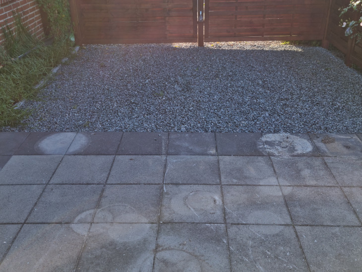 Det blev godt nok en lækker terrasse og en smart stor indkørsel med trailer parkering.
