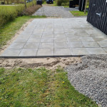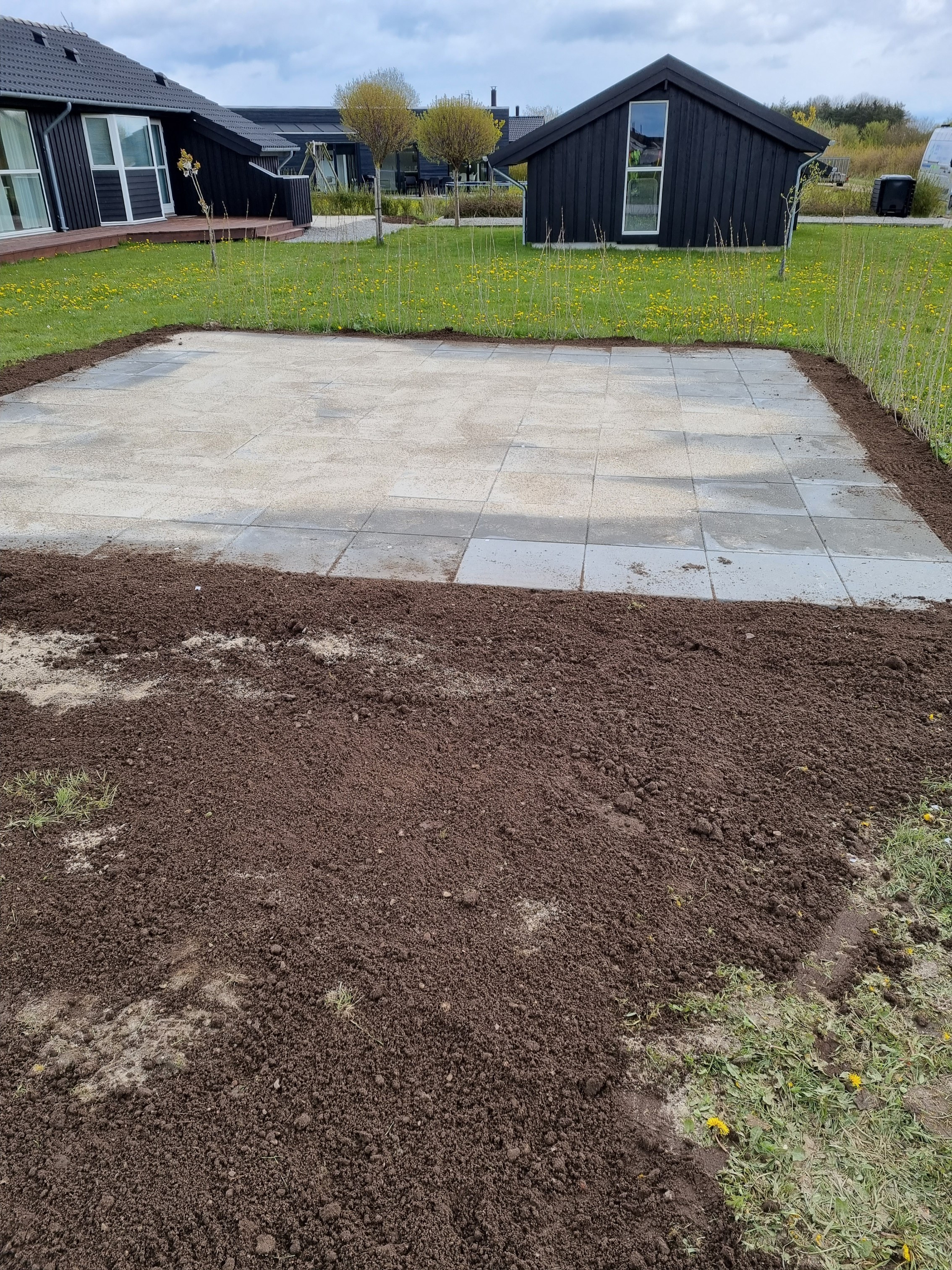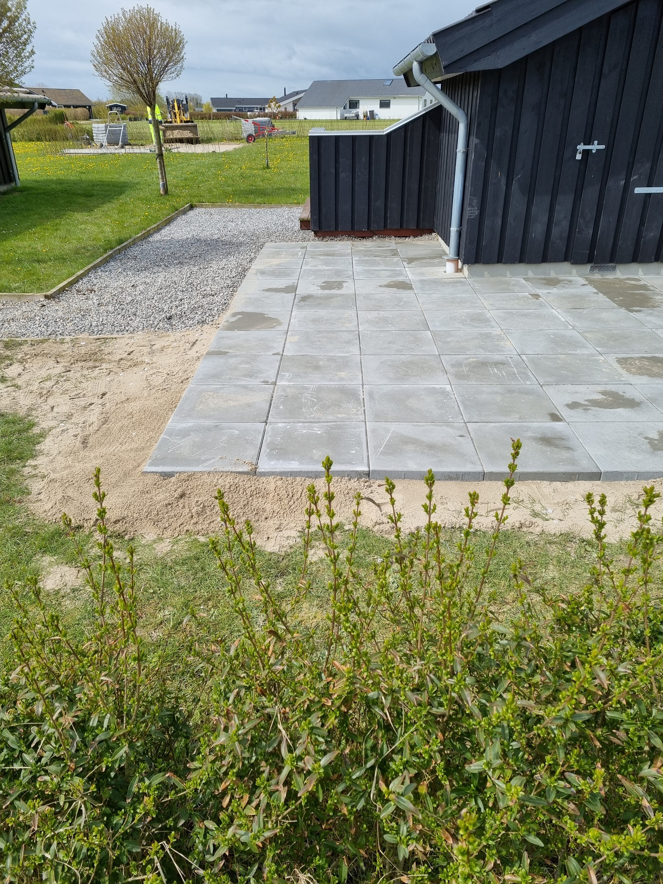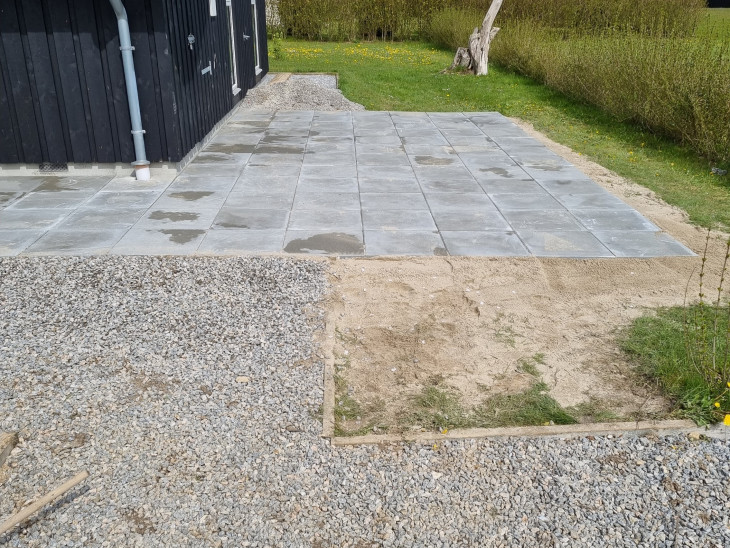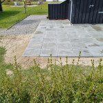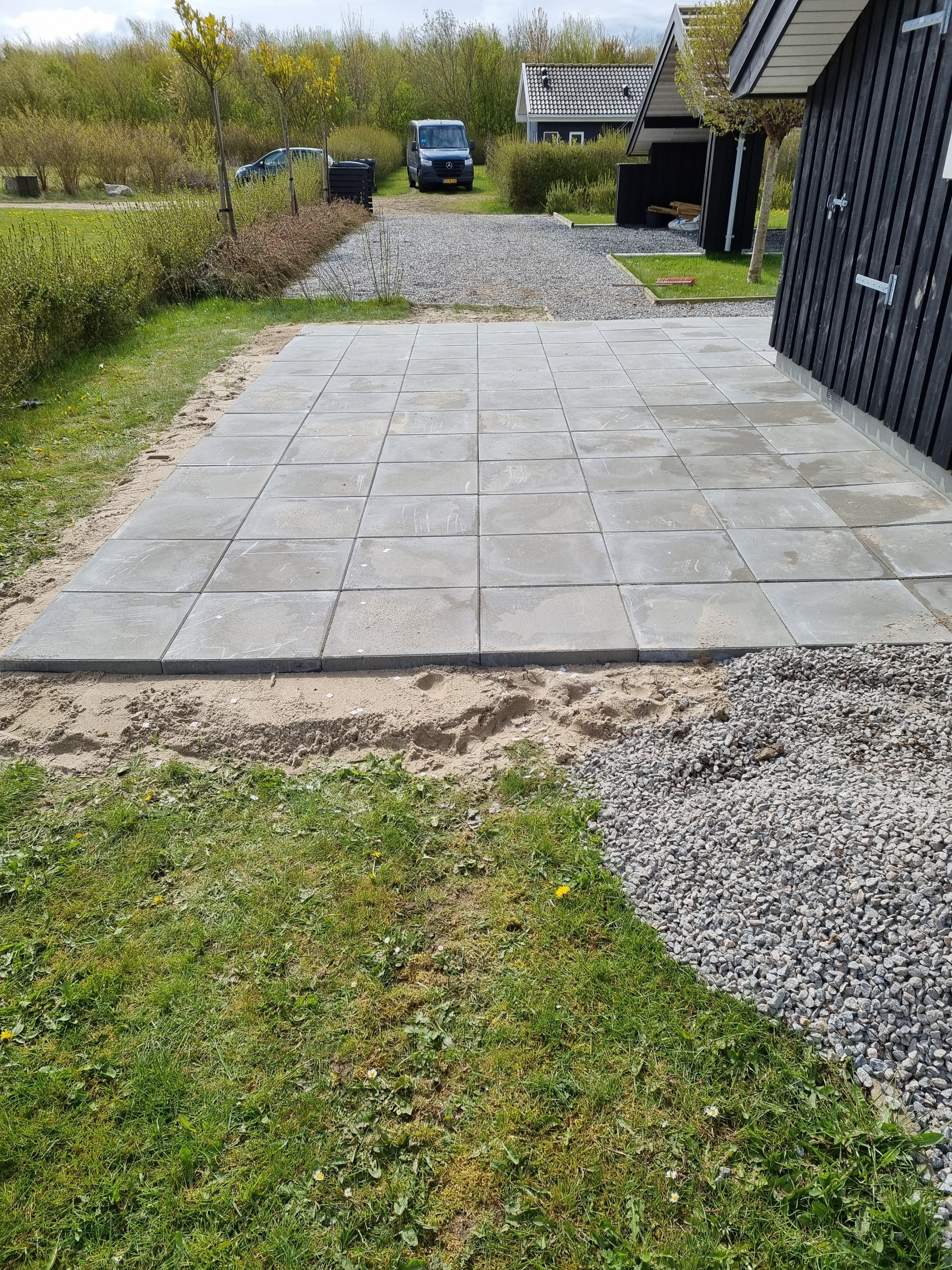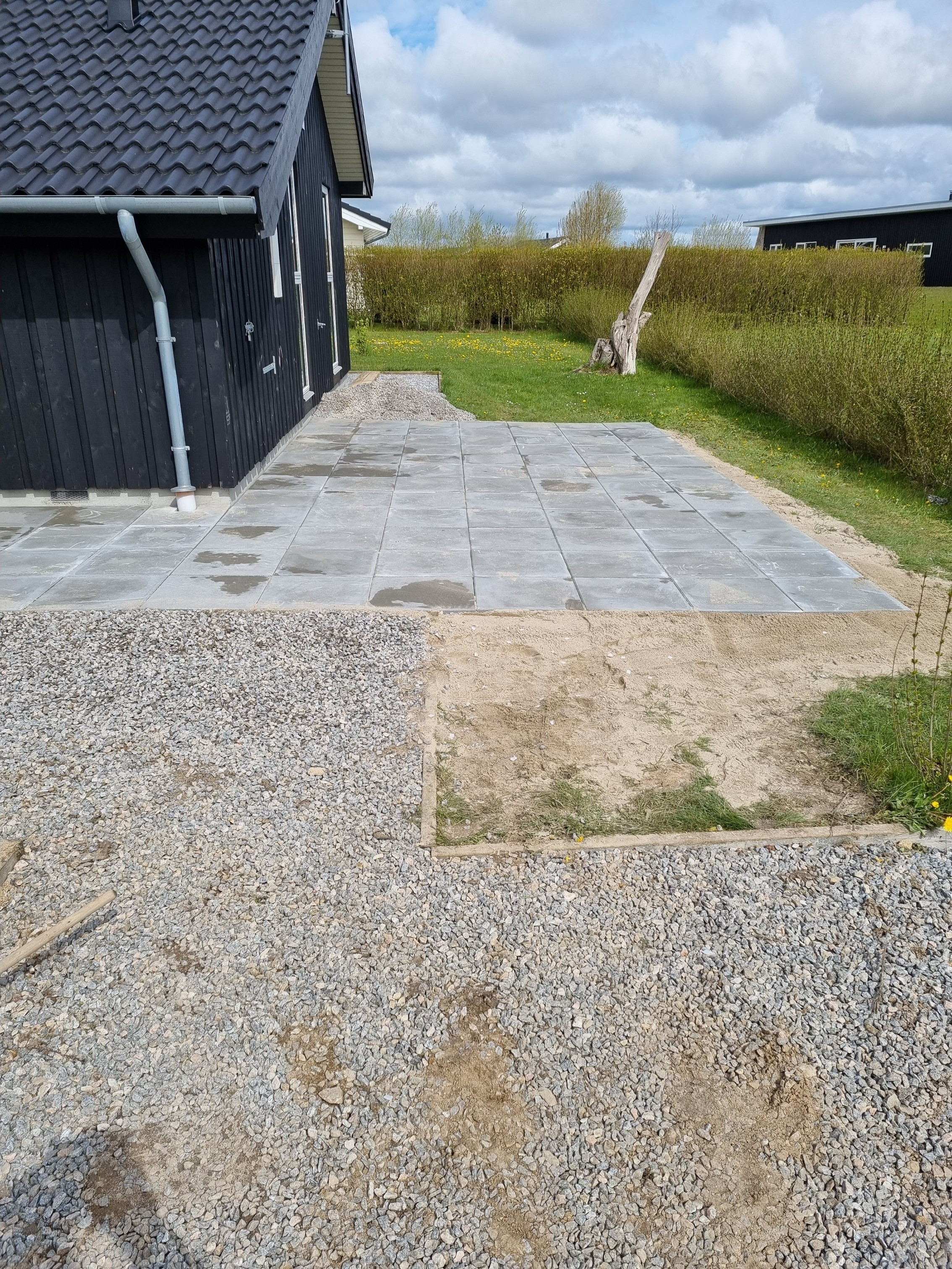 Det blev godt nok en lækker terrasse og en smart stor indkørsel med trailer parkering.