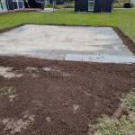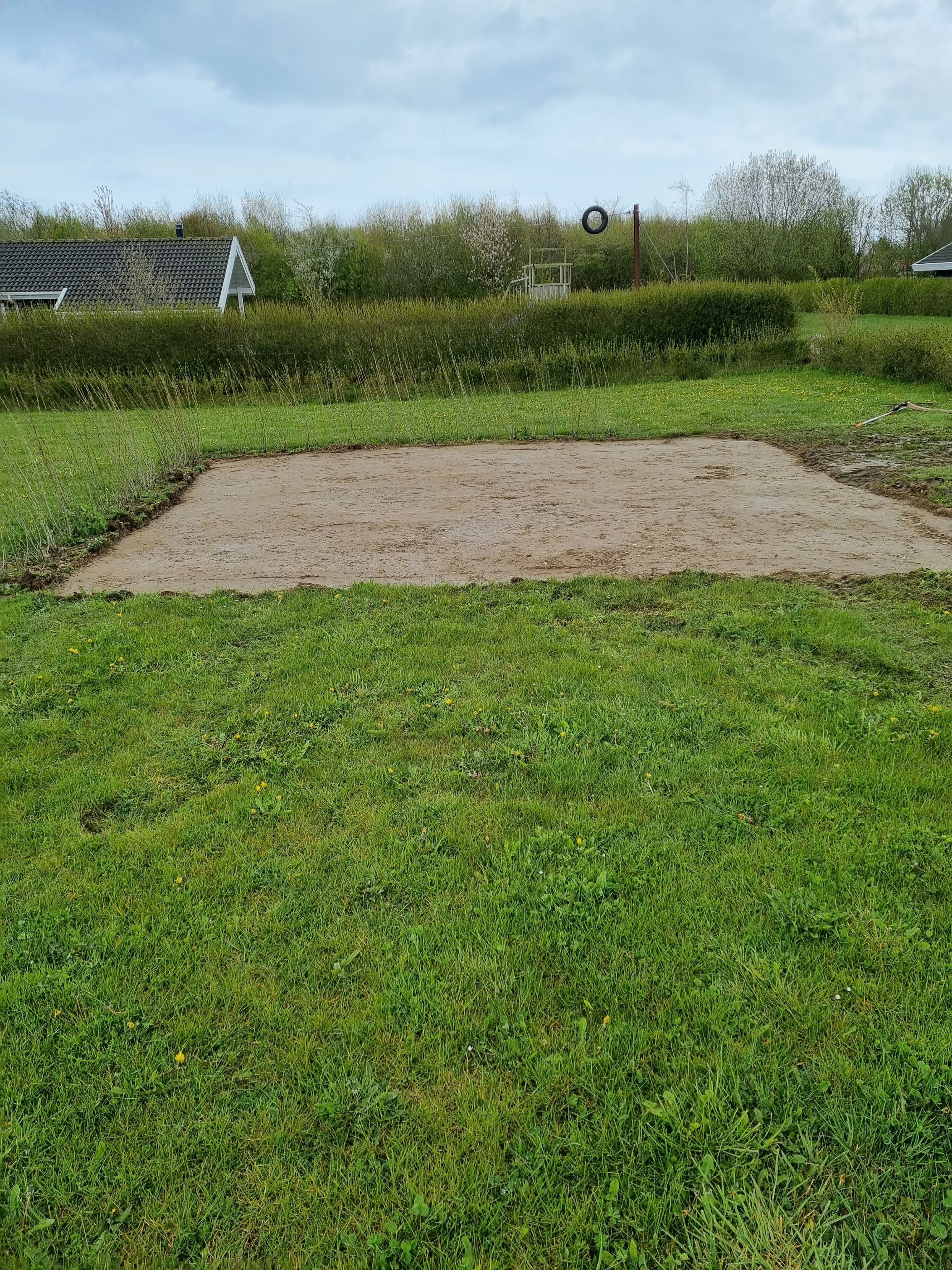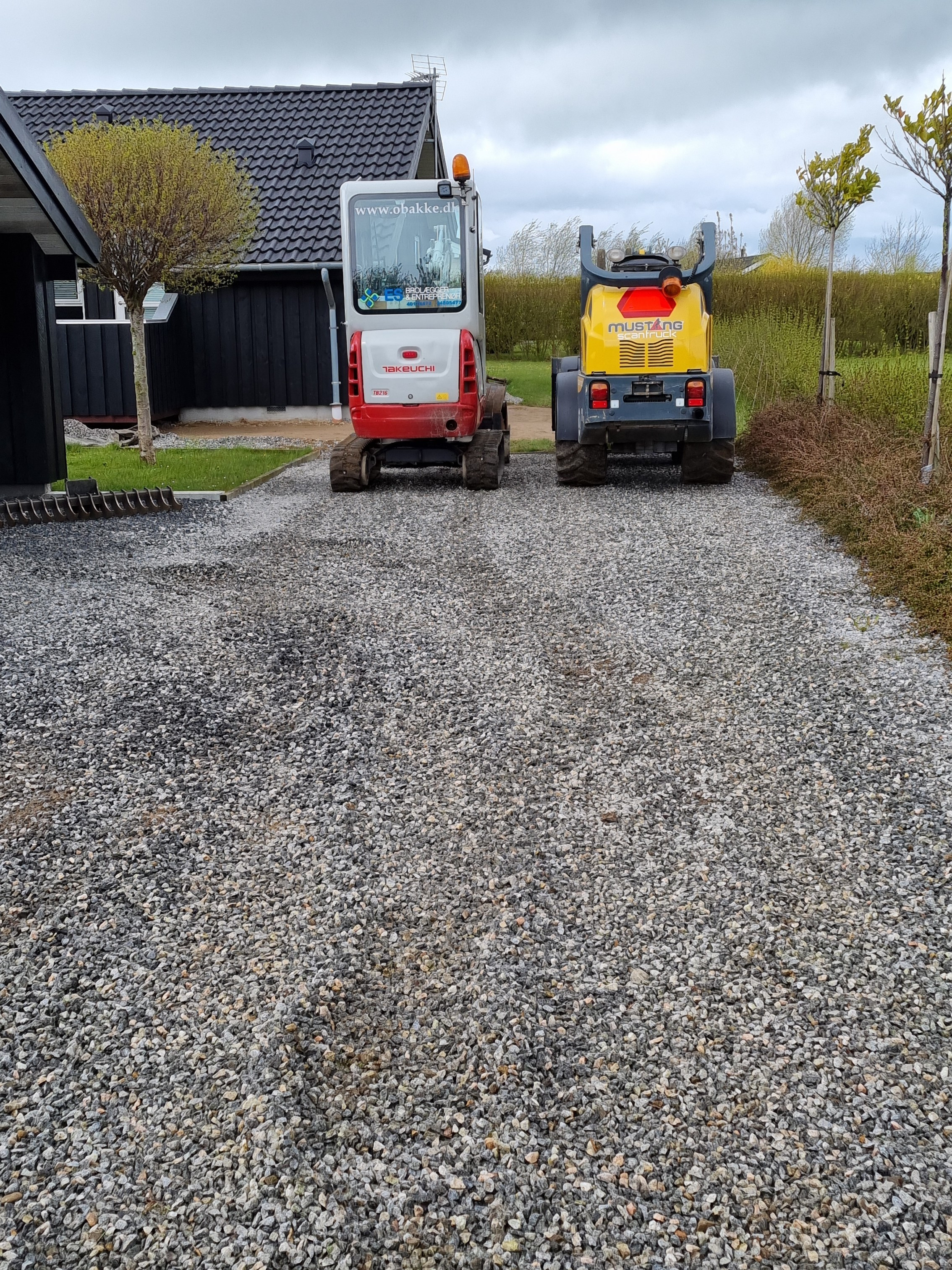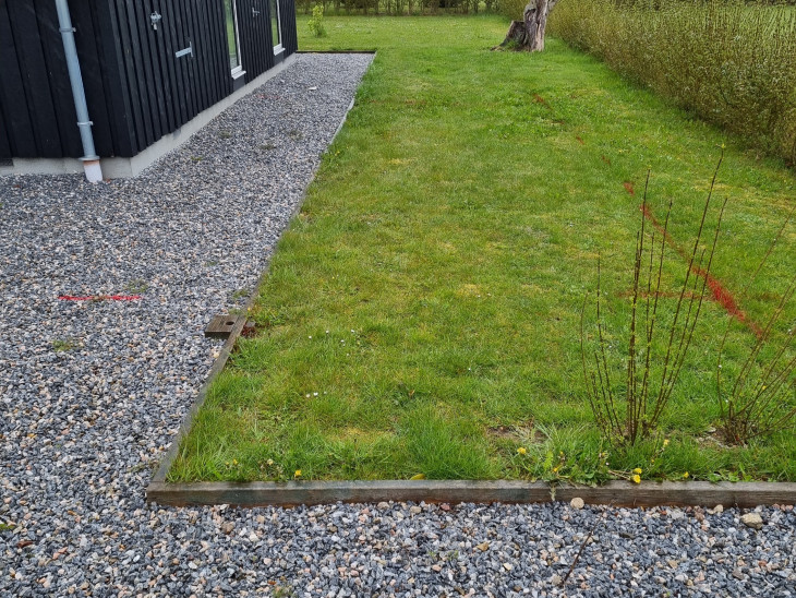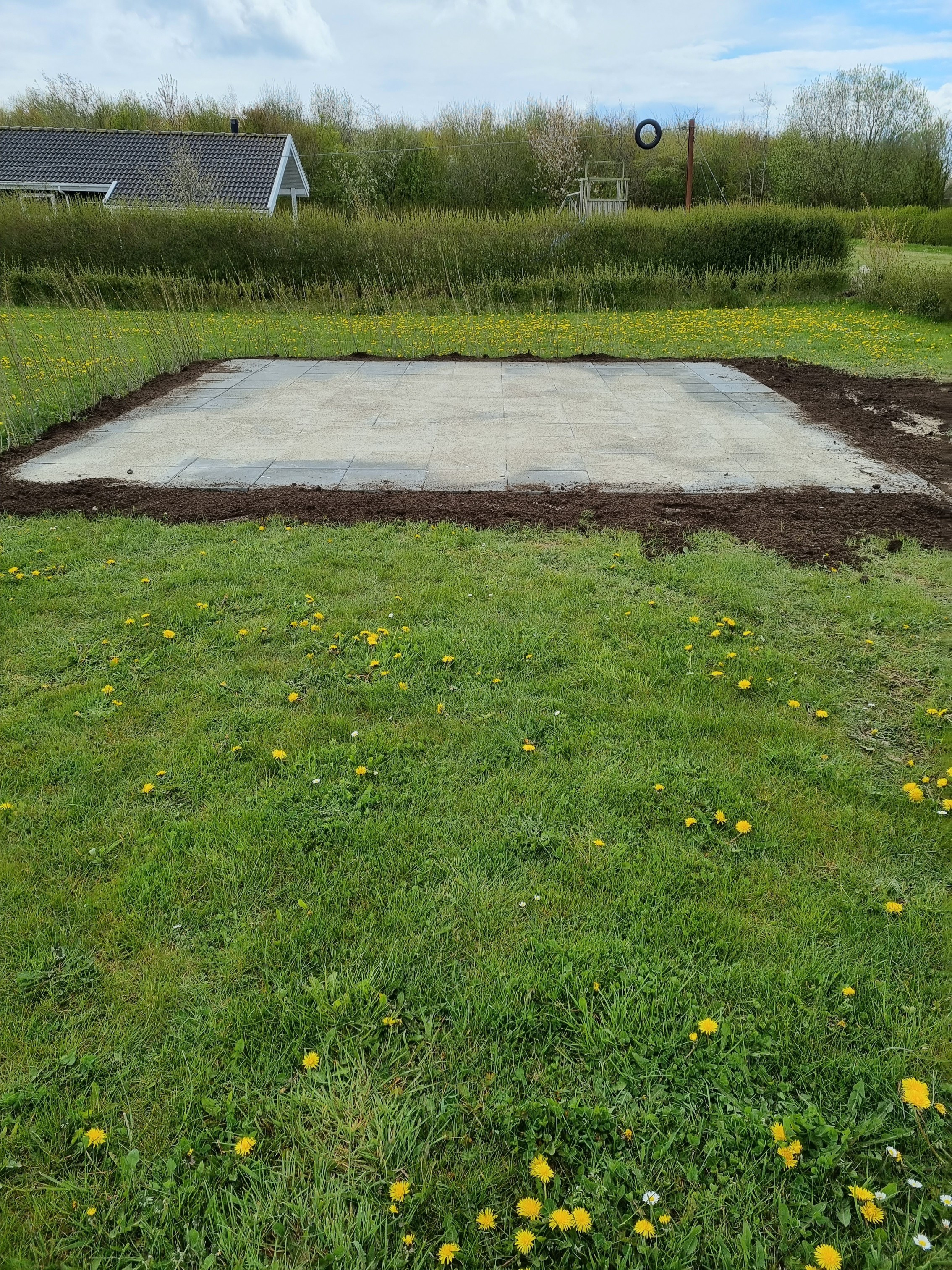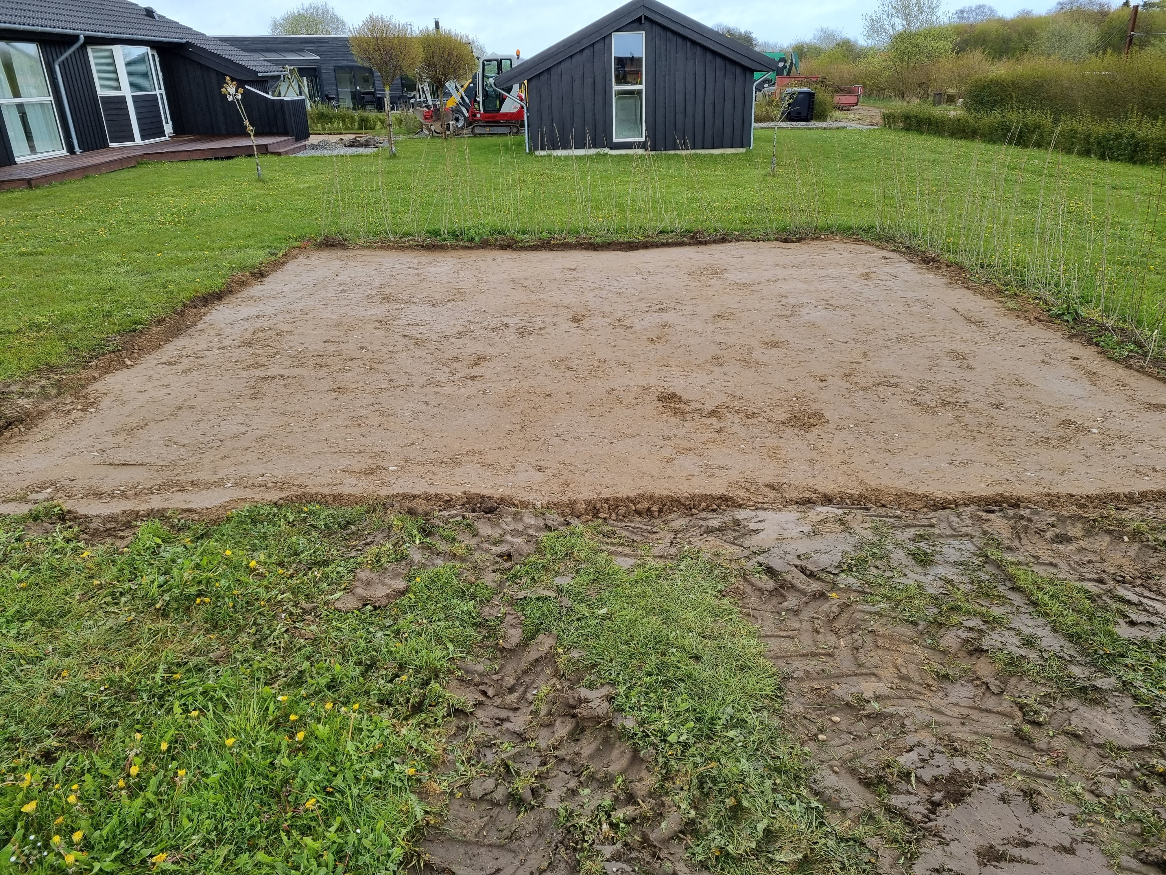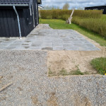 Det blev godt nok en lækker terrasse og en smart stor indkørsel med trailer parkering.